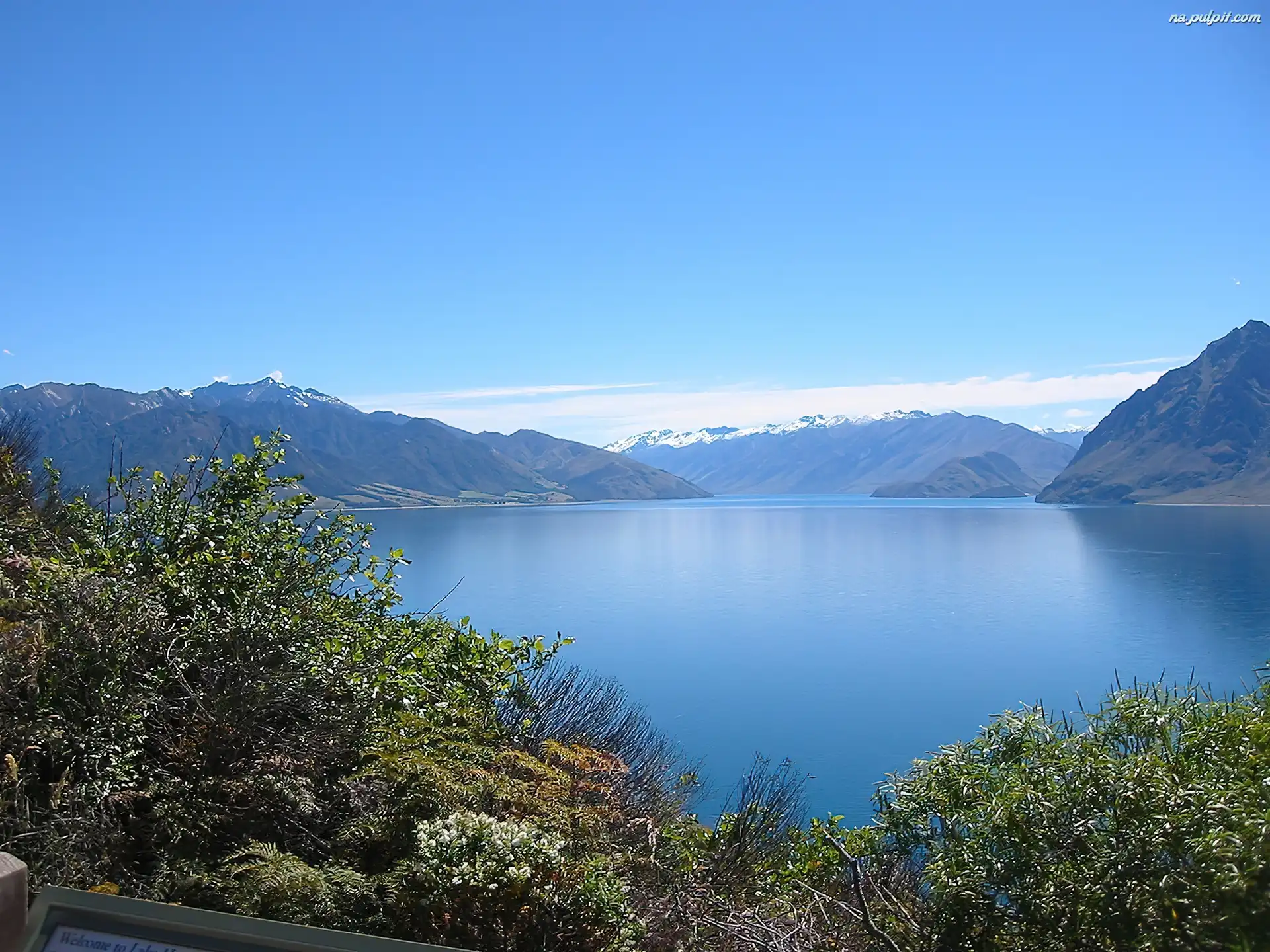 Nowa Zelandia, Roślinność, Góry, Jezioro, Hawea