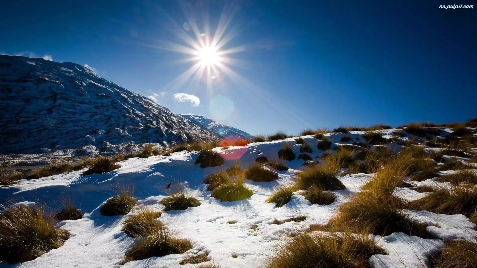 Nowa Zelandia, Przebijające, Góry, Zima, Światło