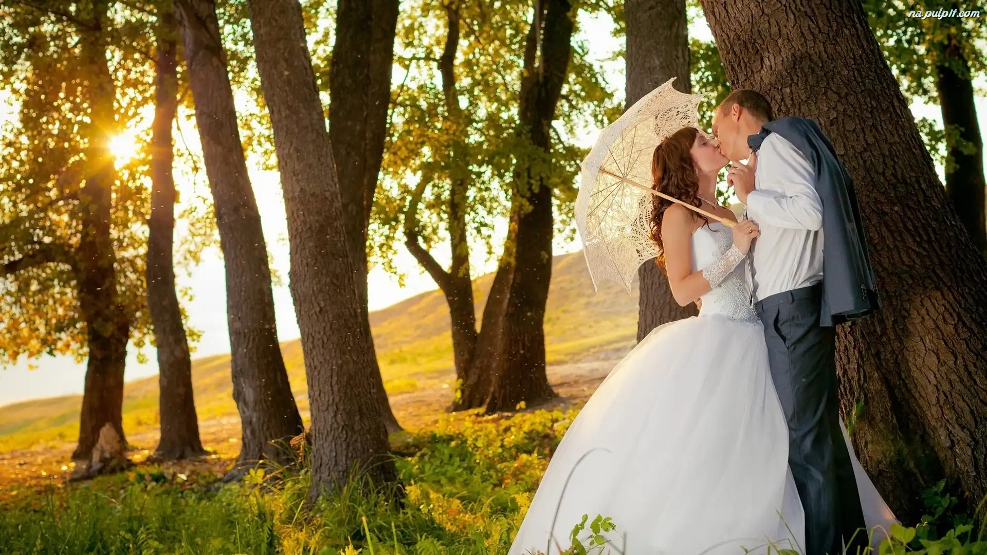 Nowożeńców, Słońca, Jesień, Las, Para, Promienie Na Pulpit