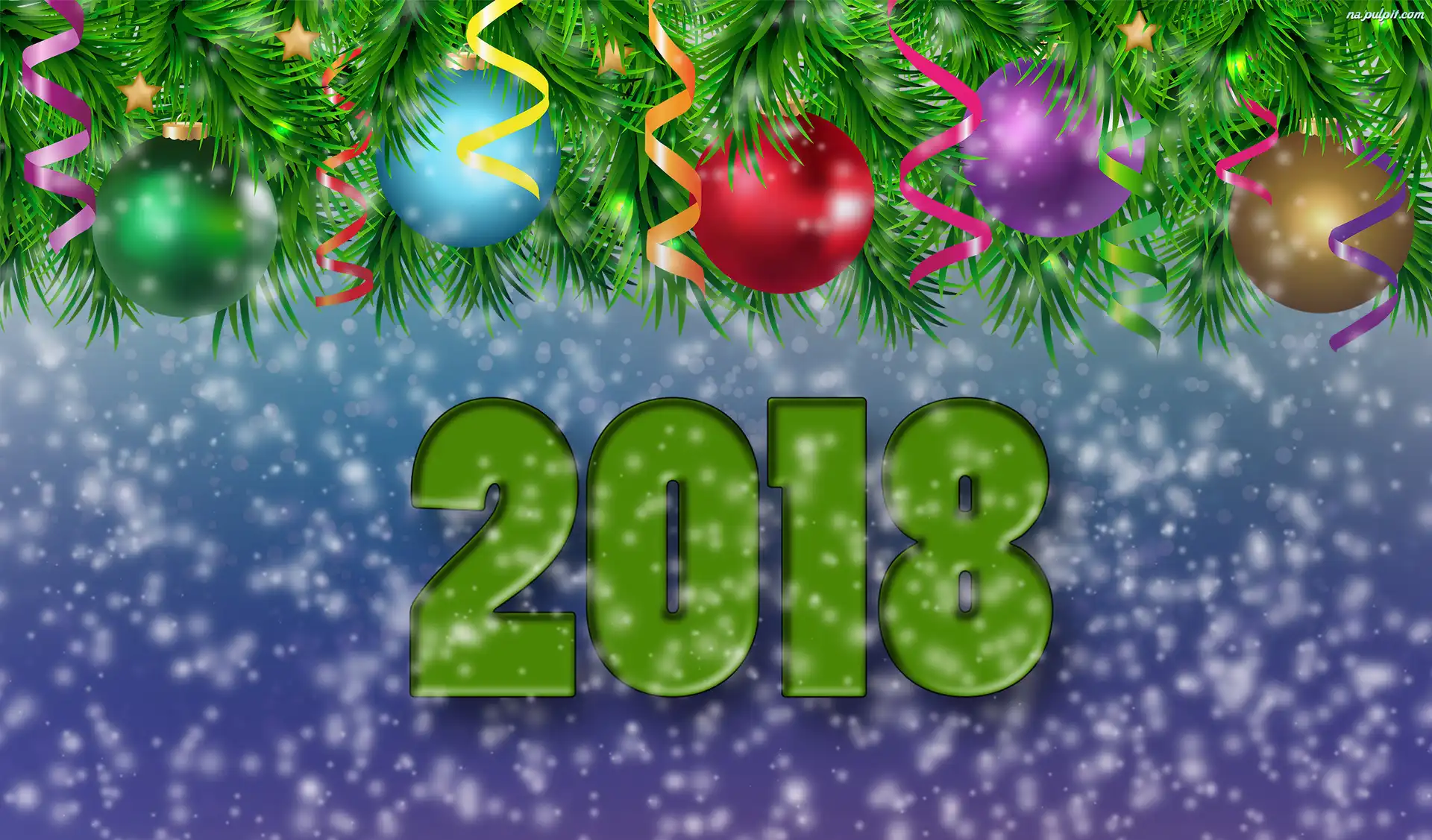 Sylwester, Nowy Rok, 2018, Bombki, Świąteczne, Gałązki