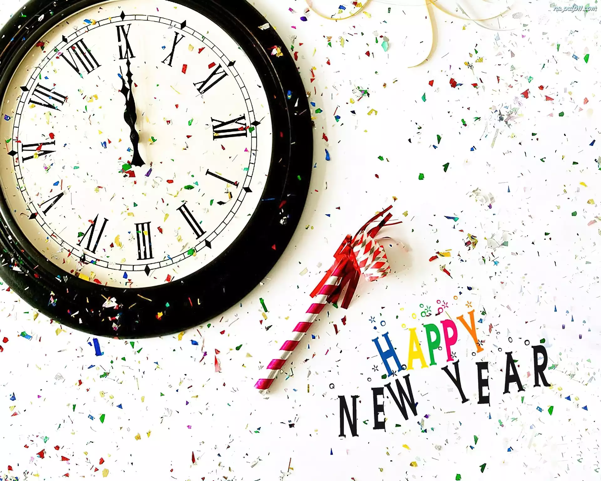 Nowy Rok, Północ, Zegar, Konfetti Na Pulpit