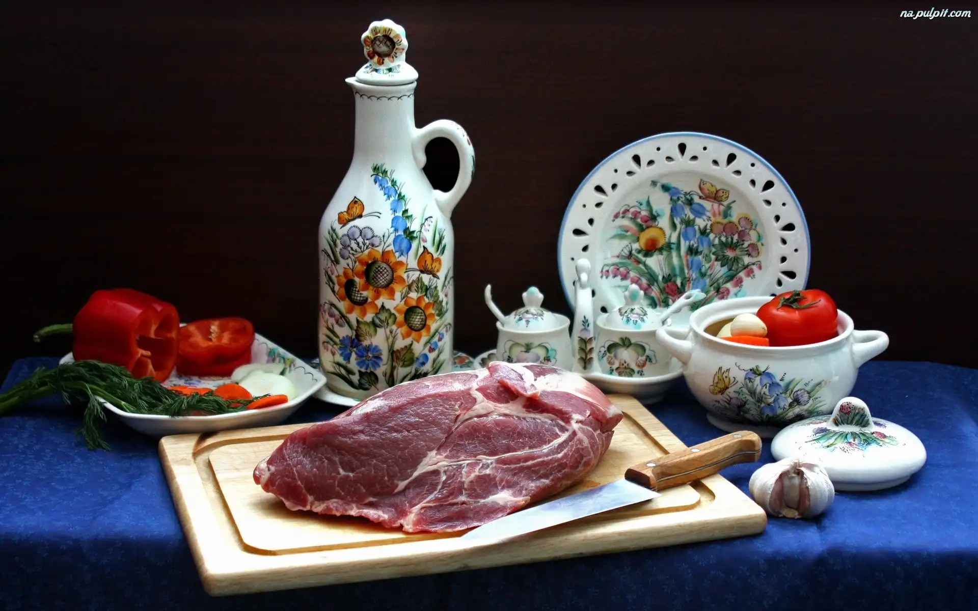 Nóż, Naczynia, Warzywa, Mięso, Deseczka