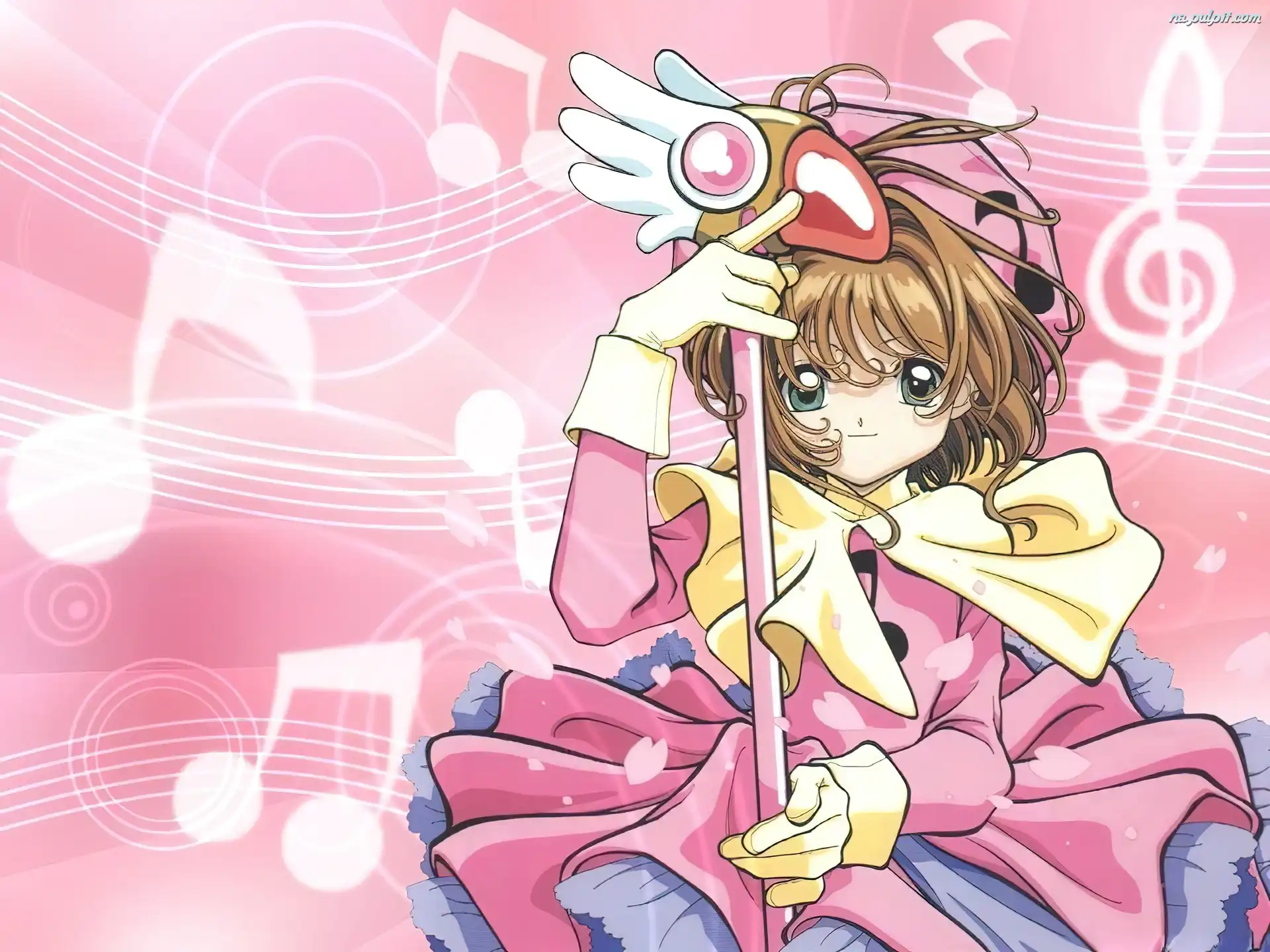 dziewczyna, nuty, sukienka, kij, Cardcaptor Sakura, totem Na Pulpit