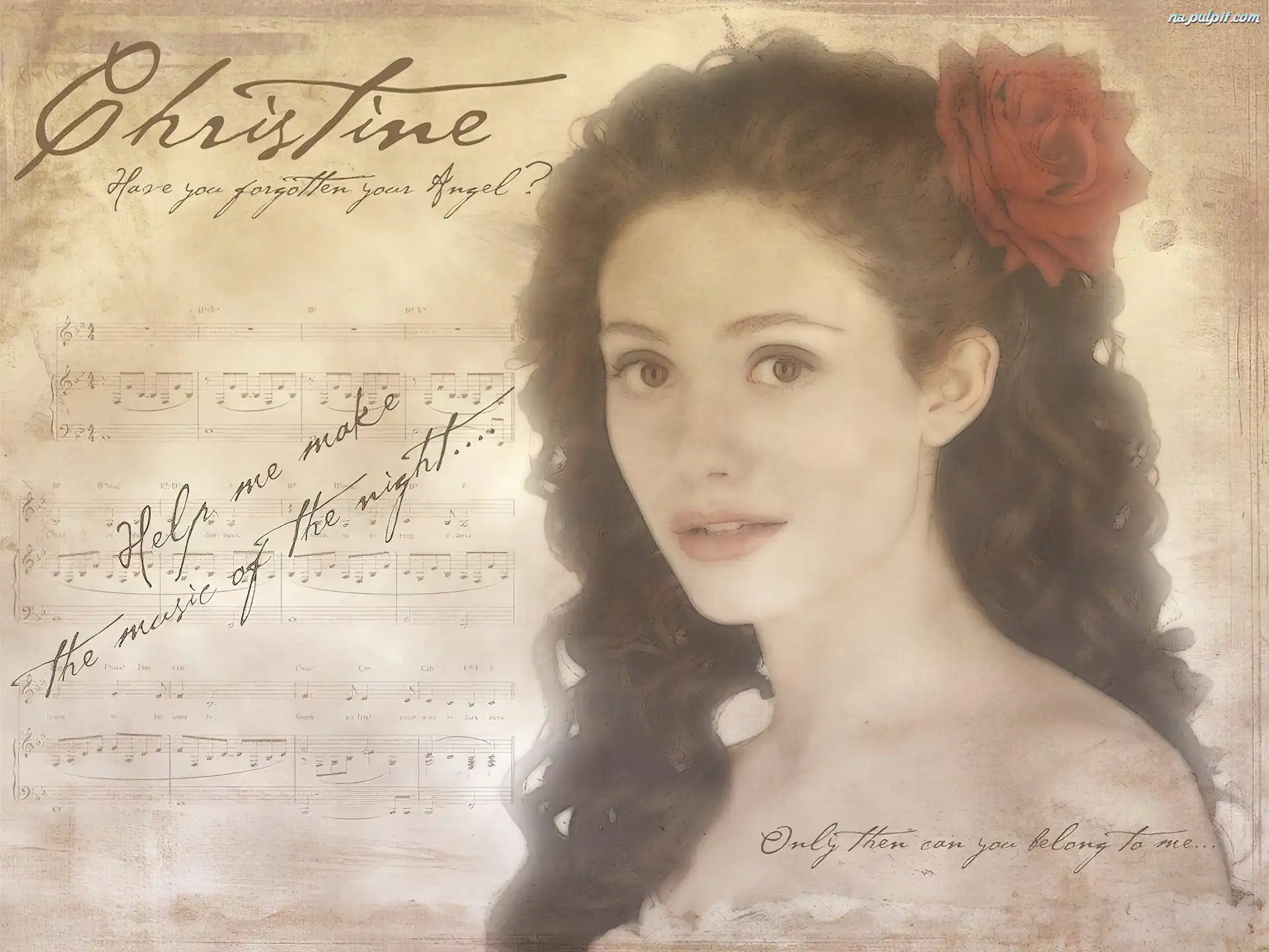 kwiat, włosy, Emmy Rossum, Phantom Of The Opera, nuty