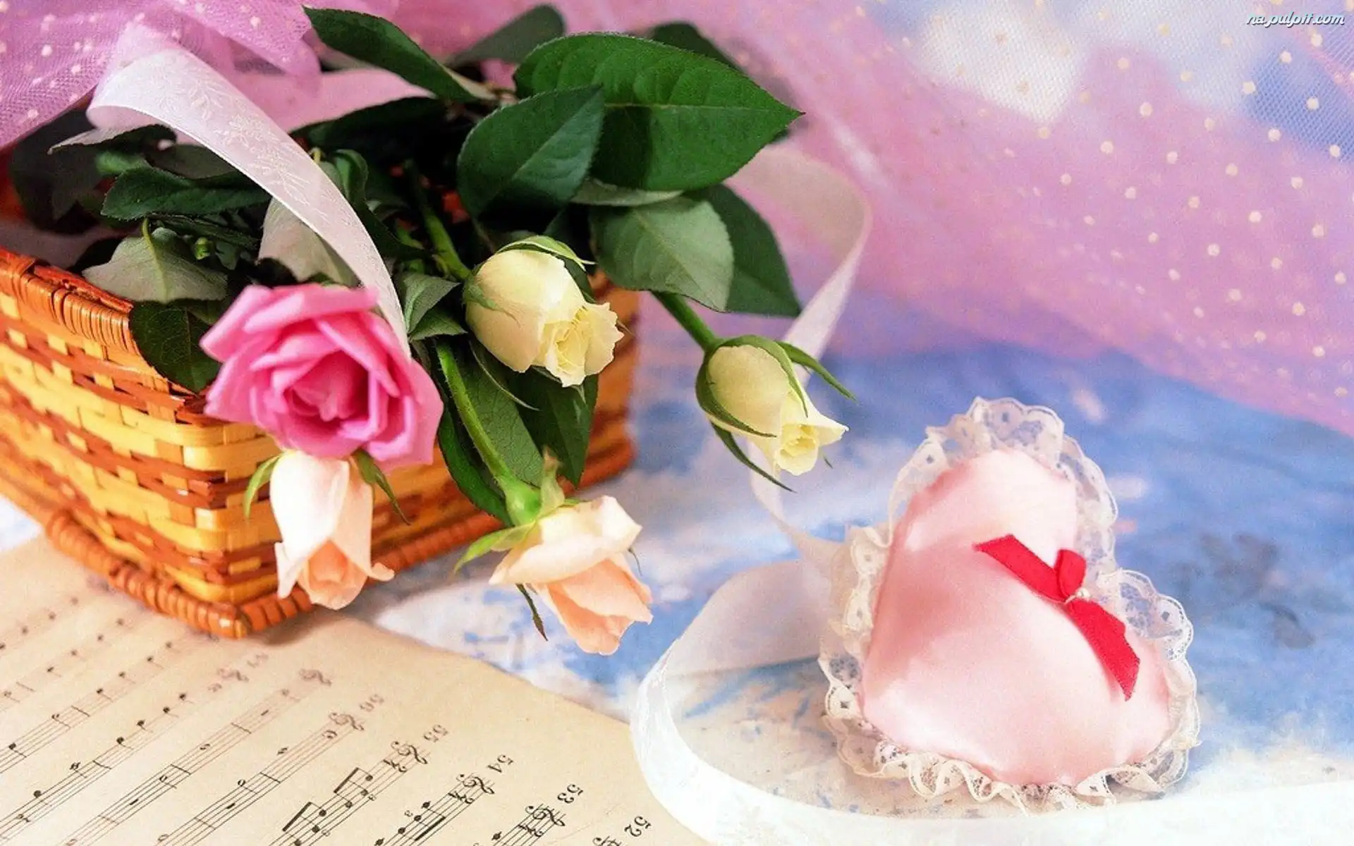 Nuty, Kolorowe, Róże, Serce Na Pulpit