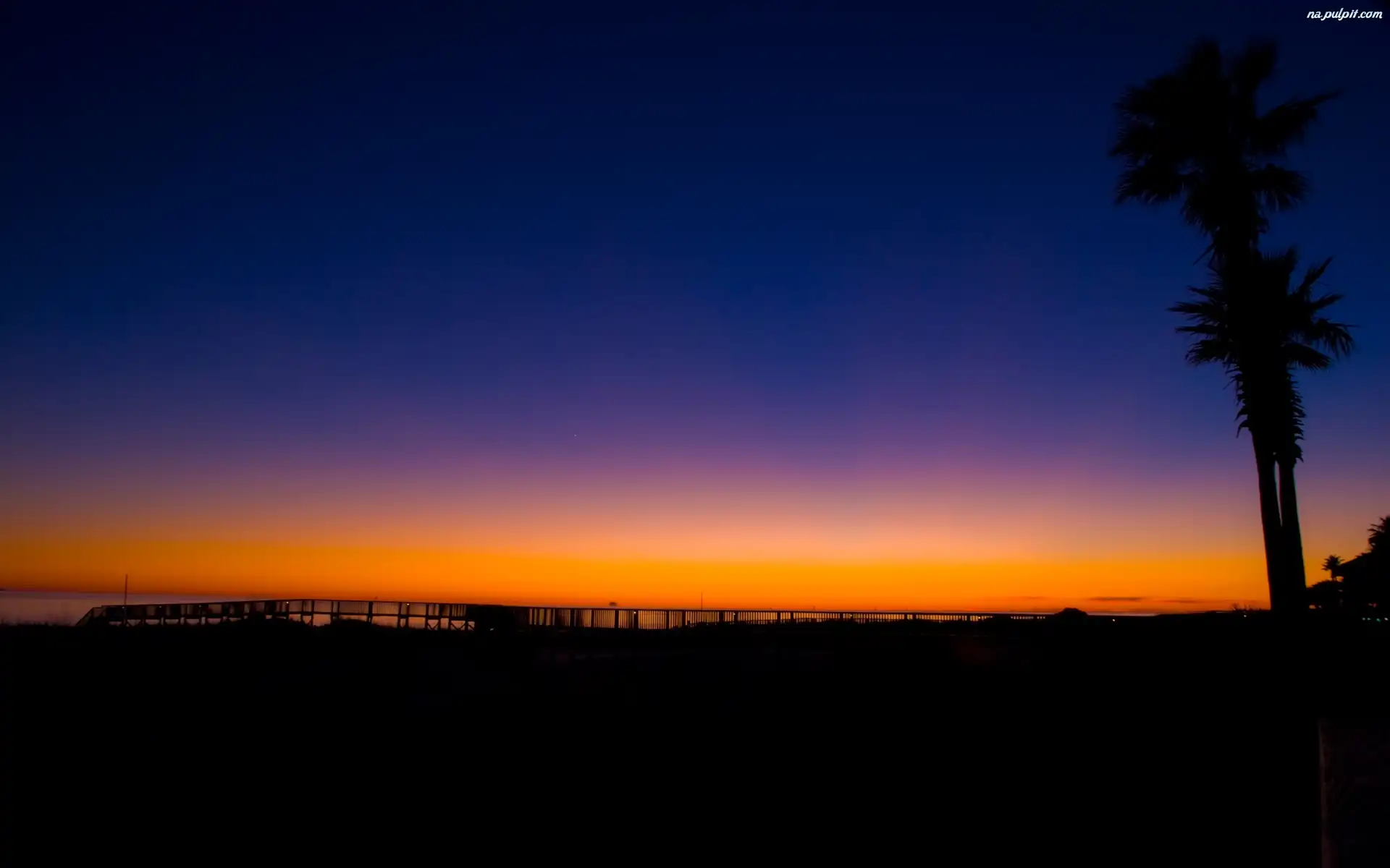 Oaza, Pustynia, Słońca, Zachód, Palma