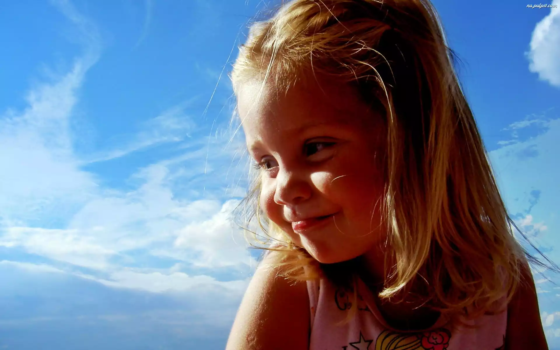 Obłoki, Uśmiech, Dziewczynka, Niebo Na Pulpit