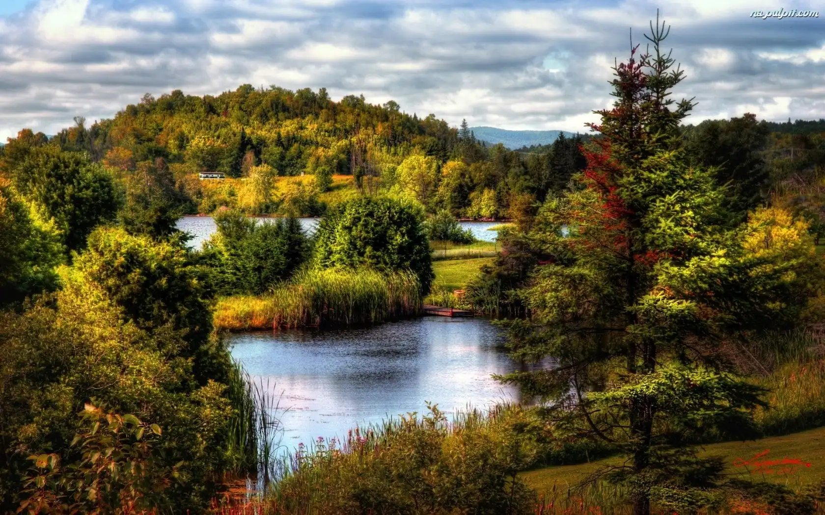 Obłoki, Jeziora, Wzgórza, Lasy Na Pulpit