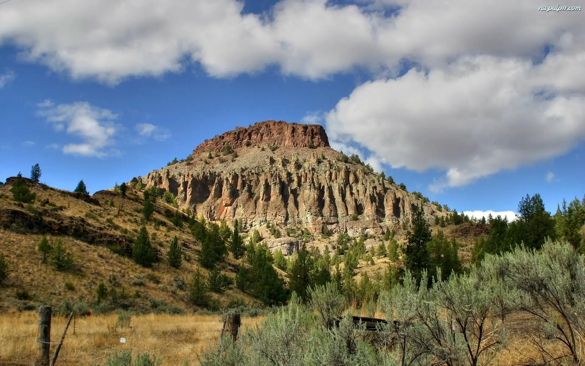 Obłoki, Skały, Wzgórza, Roślinność Na Pulpit