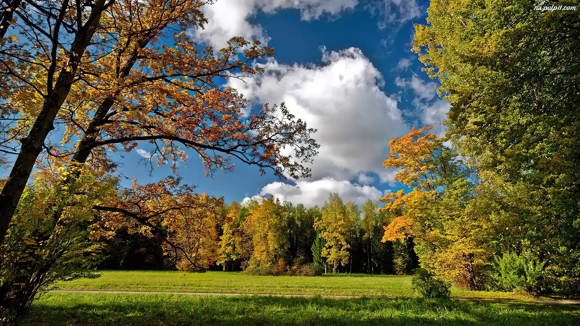 Obłoki, Las, Jesień, Złota, Białe Na Pulpit