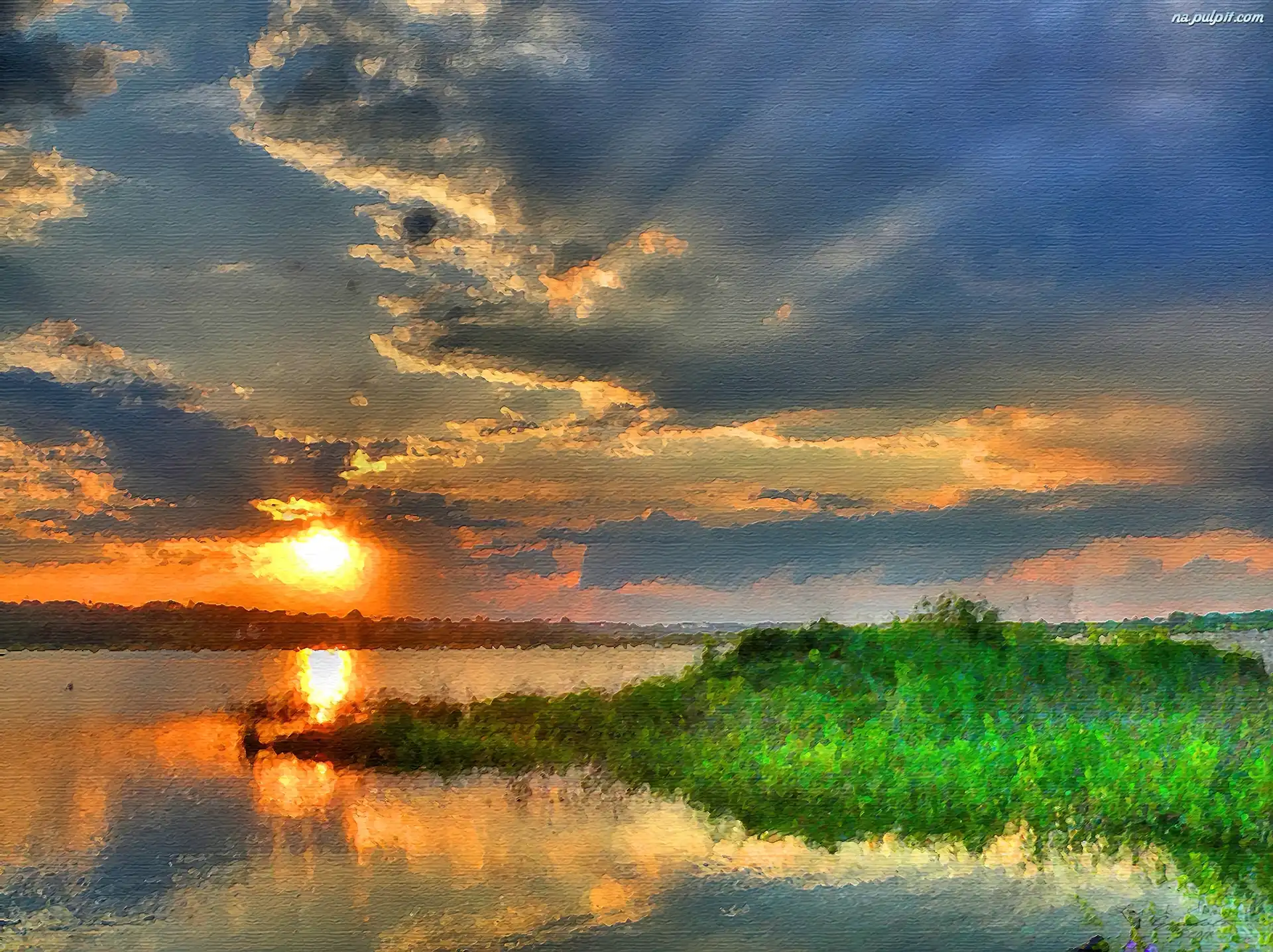 Obraz, Woda, Chmury, Słońce