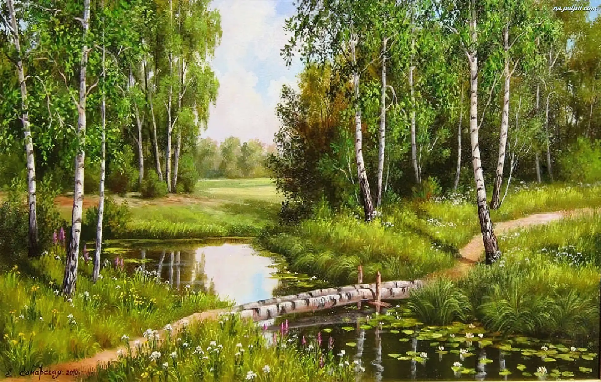 Obraz, Strumyk, Brzozowy, Las, Widok Na Pulpit