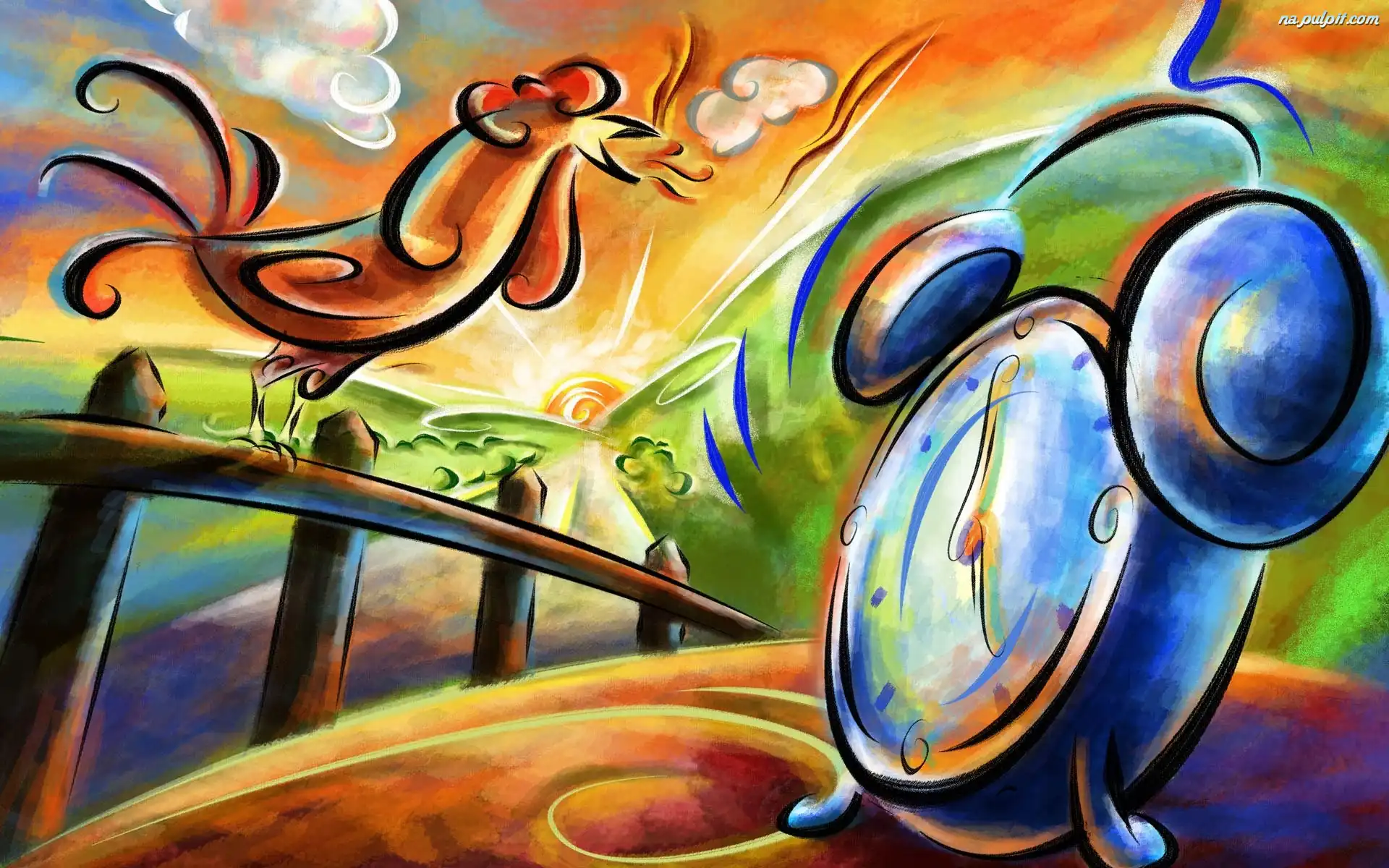 Obraz, Wschód, Słońca, Kogut, Malarstwo, Budzik Na Pulpit