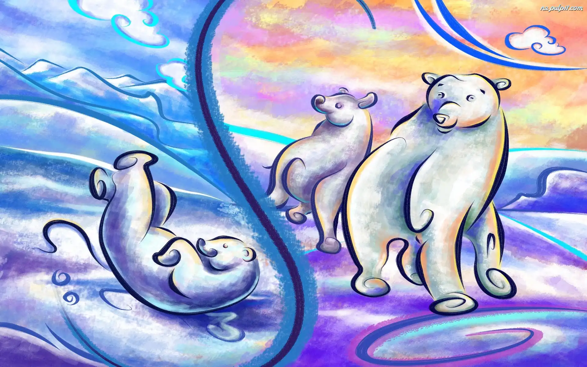 Niedźwiedzie, Obraz, Ręcznie, Polarne, Zabawa, Malowane, Malarstwo, Misie Na Pulpit