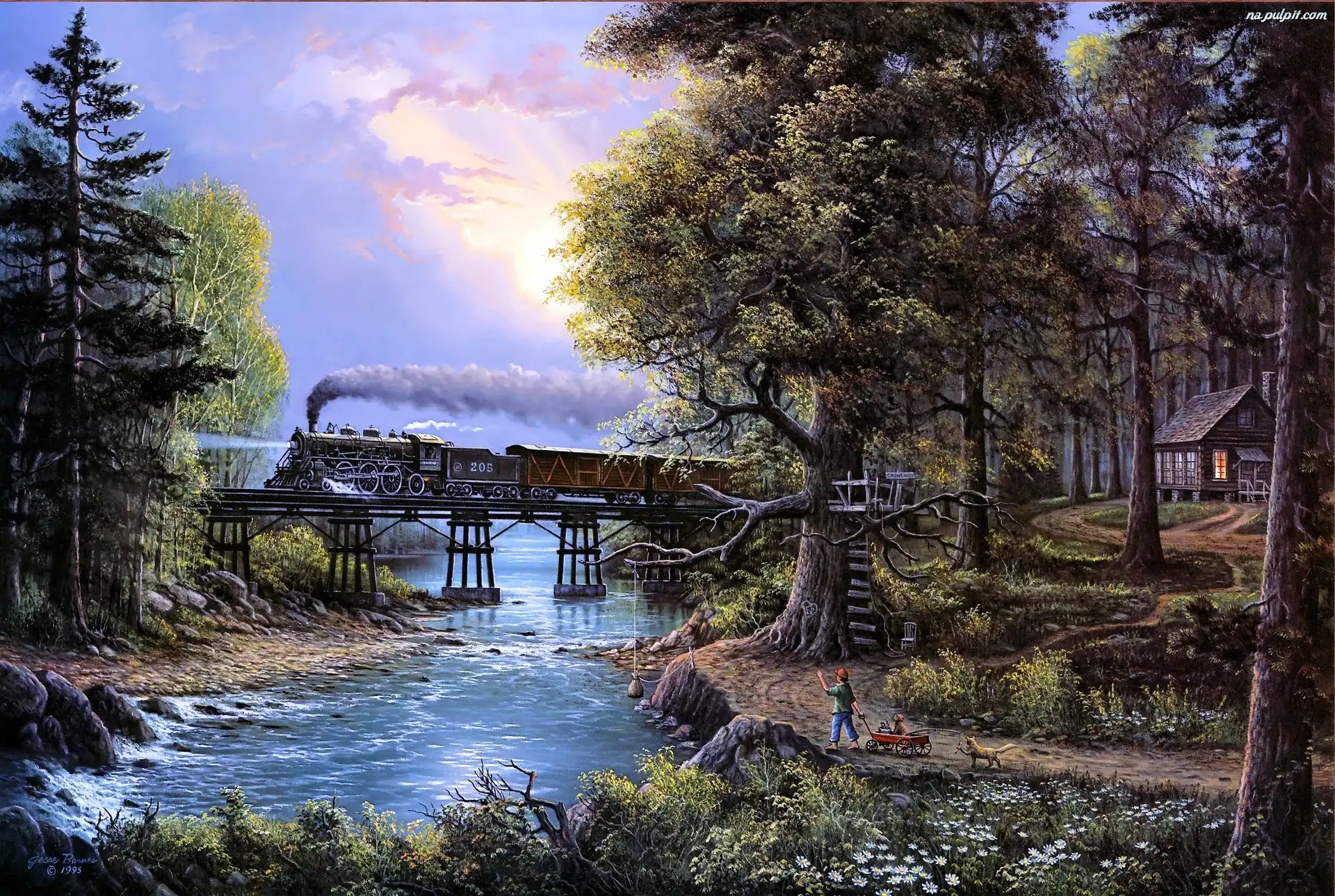 Obraz, Most, PociÄ…g, Rzeka Na Pulpit