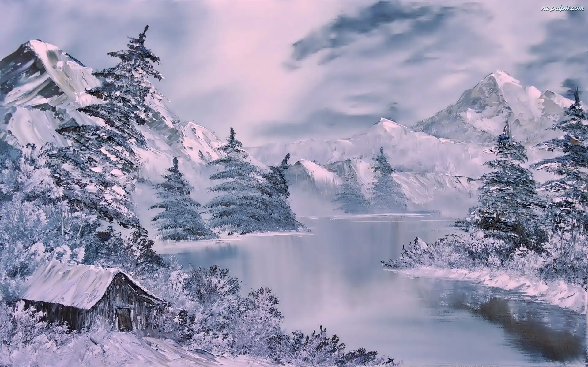 Obraz, Góry, Zima, Rzeka Na Pulpit