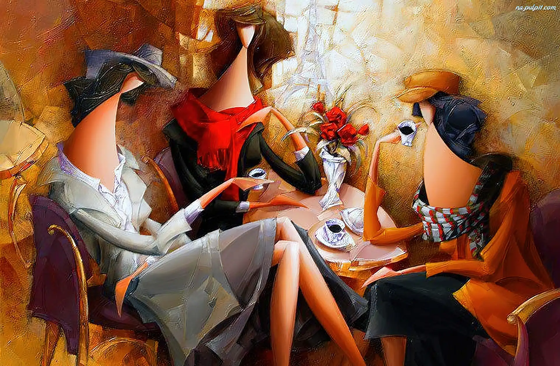 Obrazu, Stoliku, Przy, Kobiety, Abstrakcja Reprodukcja Na Pulpit