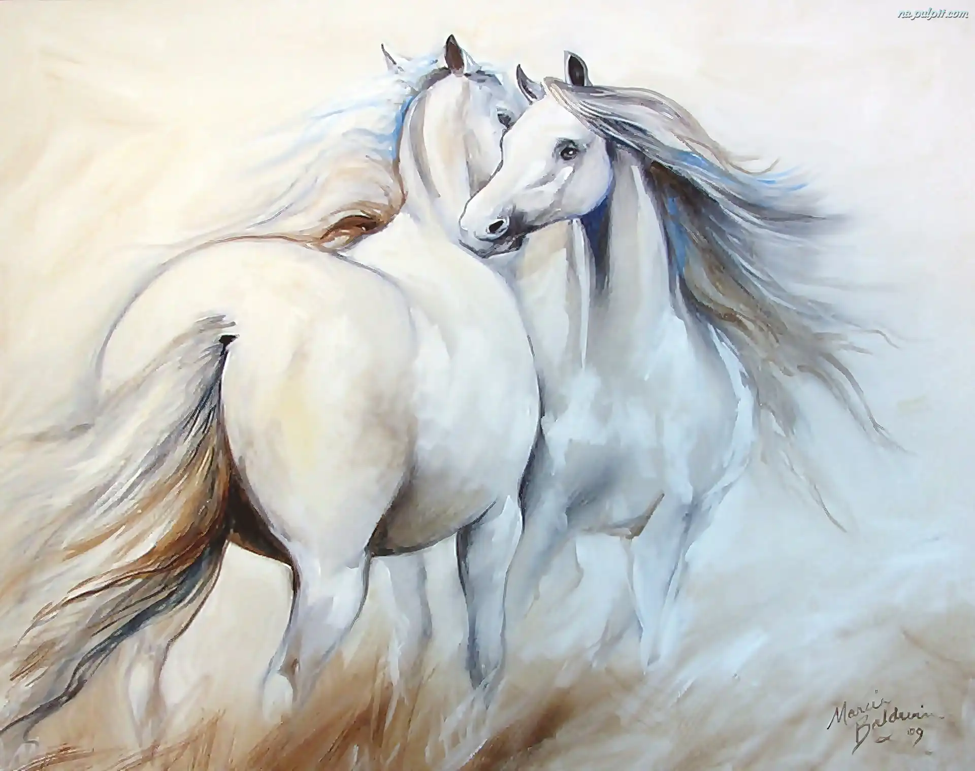 Obrazu, Konie, Białe, Dwa, Reprodukcja Na Pulpit