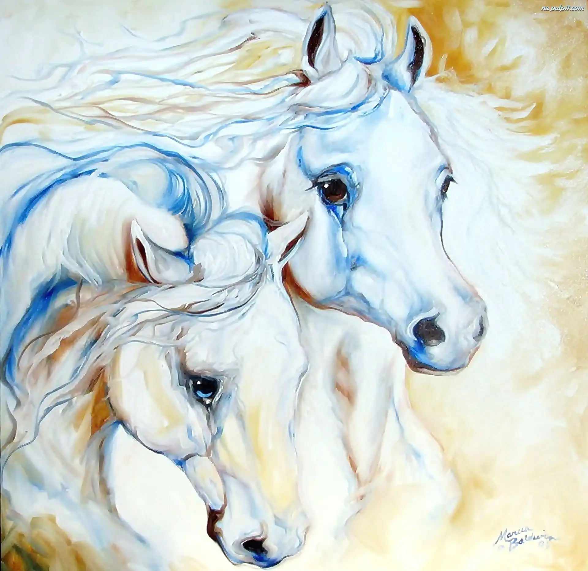 Obrazu, Konie, Dwa, Reprodukcja Na Pulpit