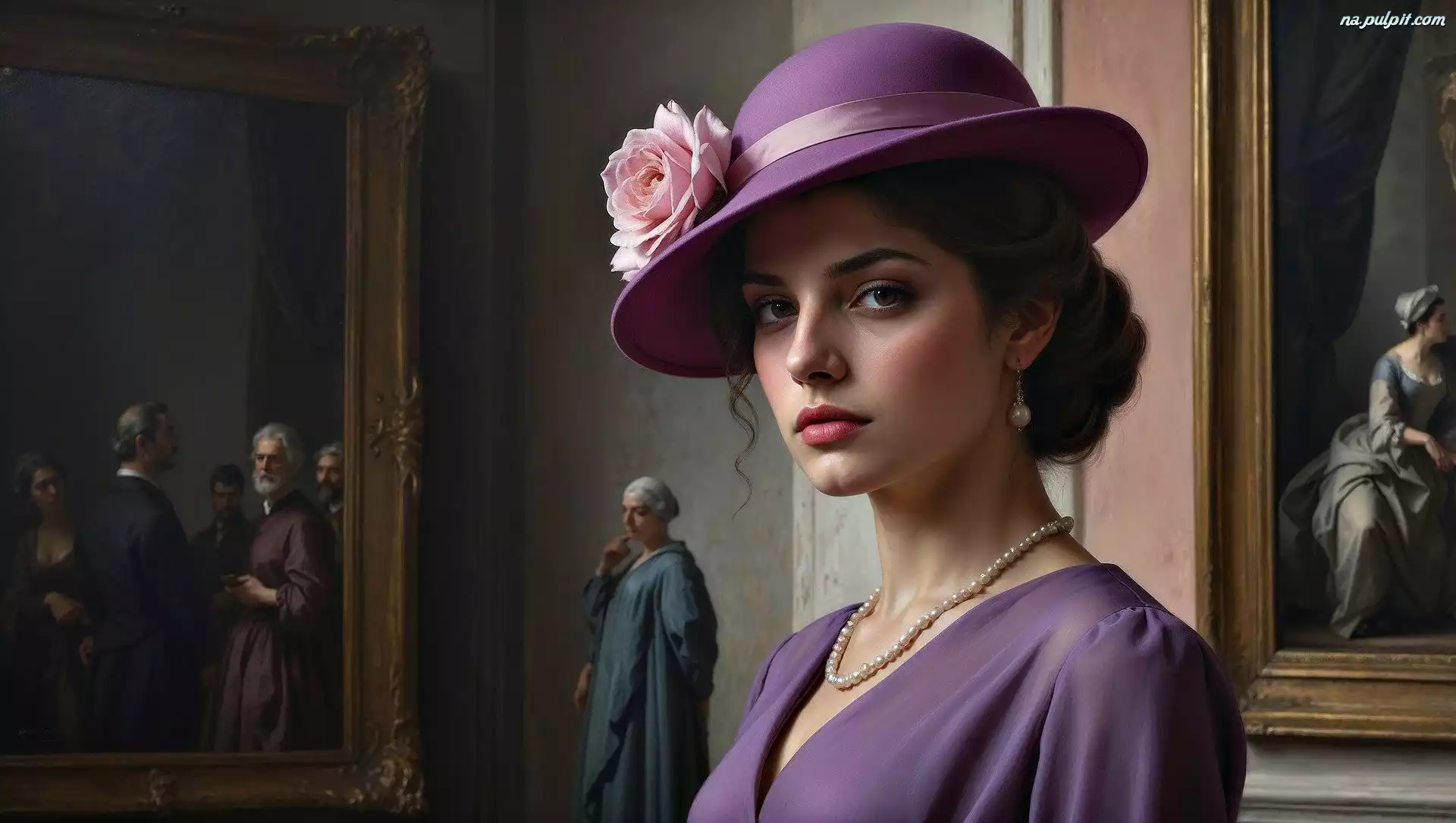 Kobieta, Fioletowy, Kapelusz, Obrazy Na Pulpit