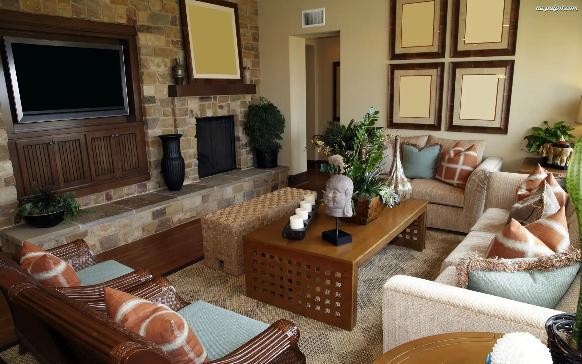 Obrazy, Stolik, Kanapy, Pokój, Kwiaty Na Pulpit