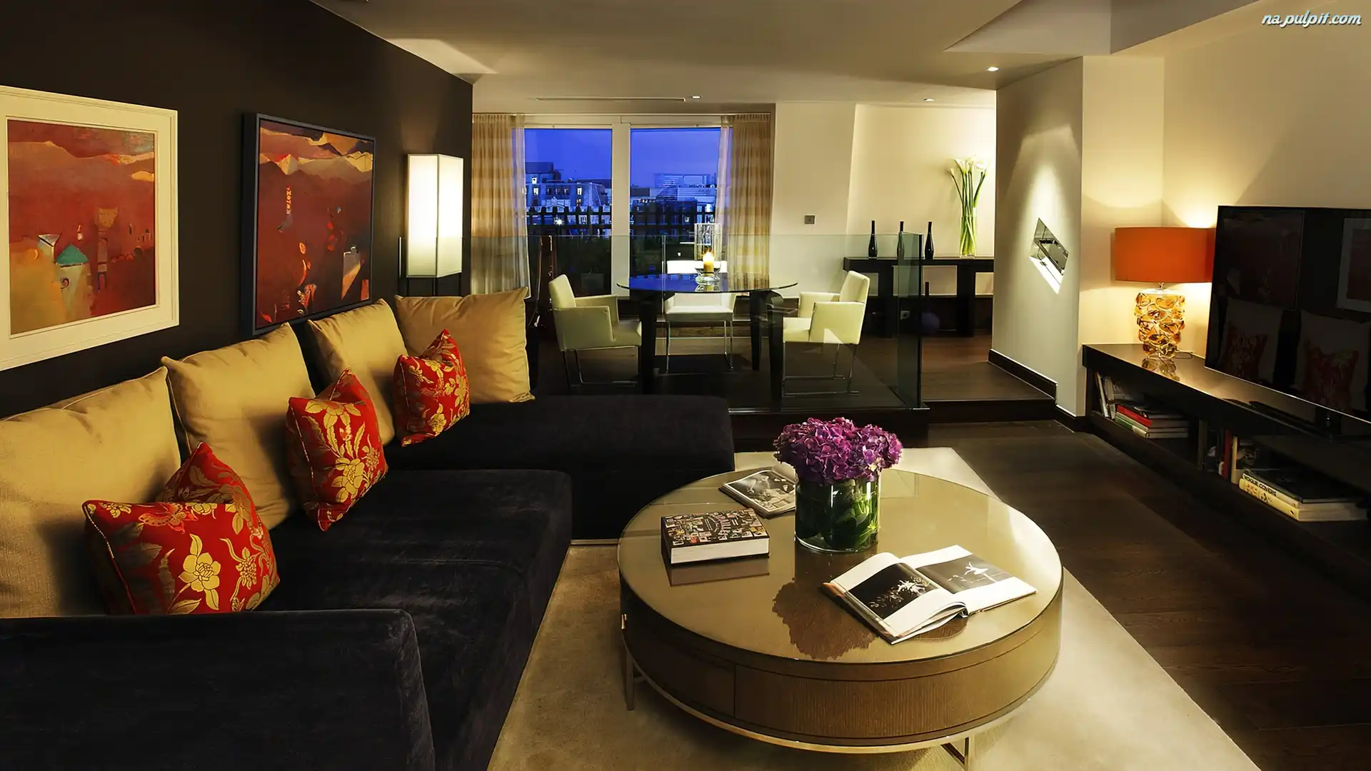 Obrazy, Wersalka, Stolik, Pokój, Poduszki Na Pulpit