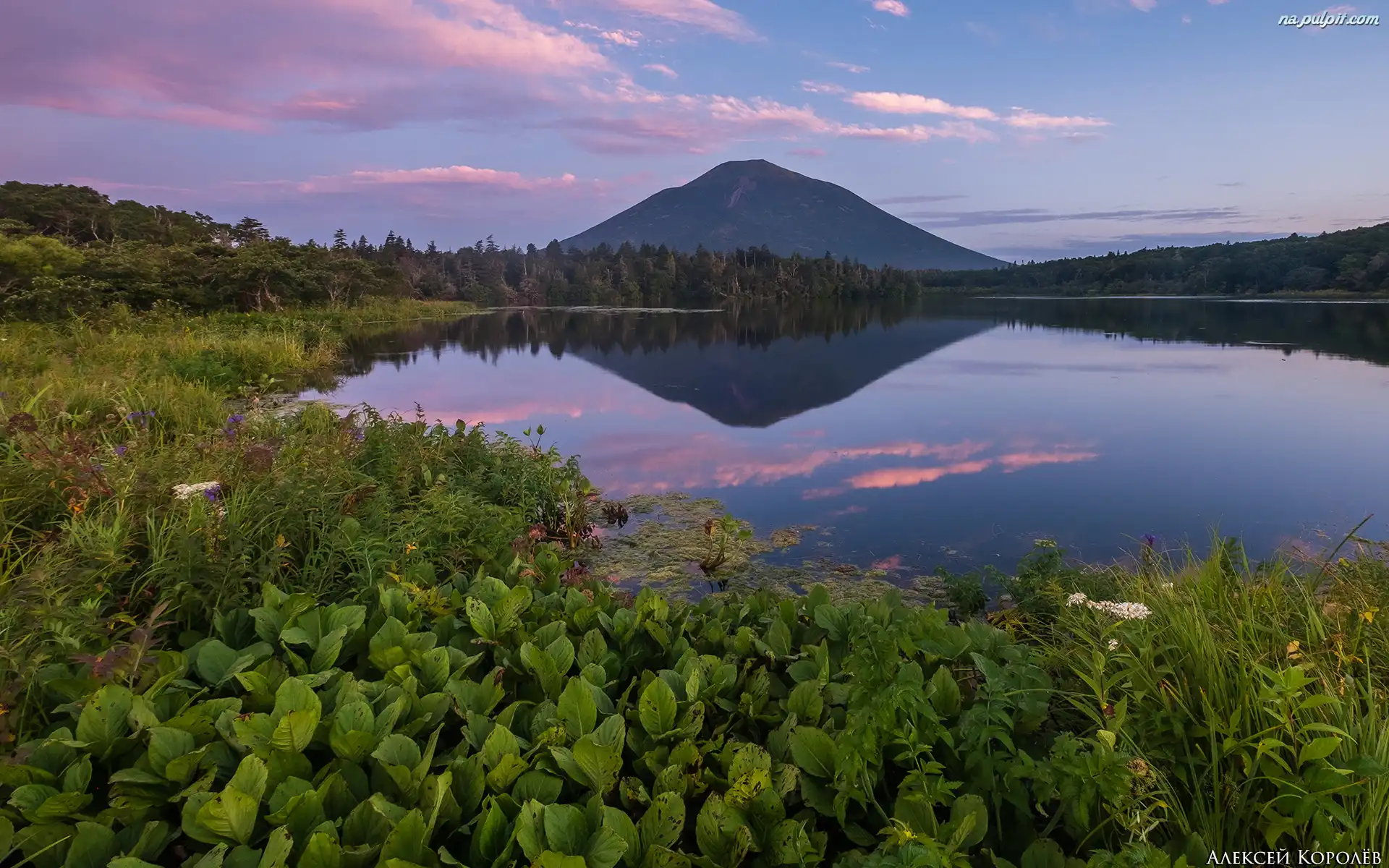 Wyspa Iturup, Startowulkan Atsonupuri, Jezioro, Obwód sachaliński, Rosja, Rośliny, Góra, Wyspy Kurylskie Na Pulpit |