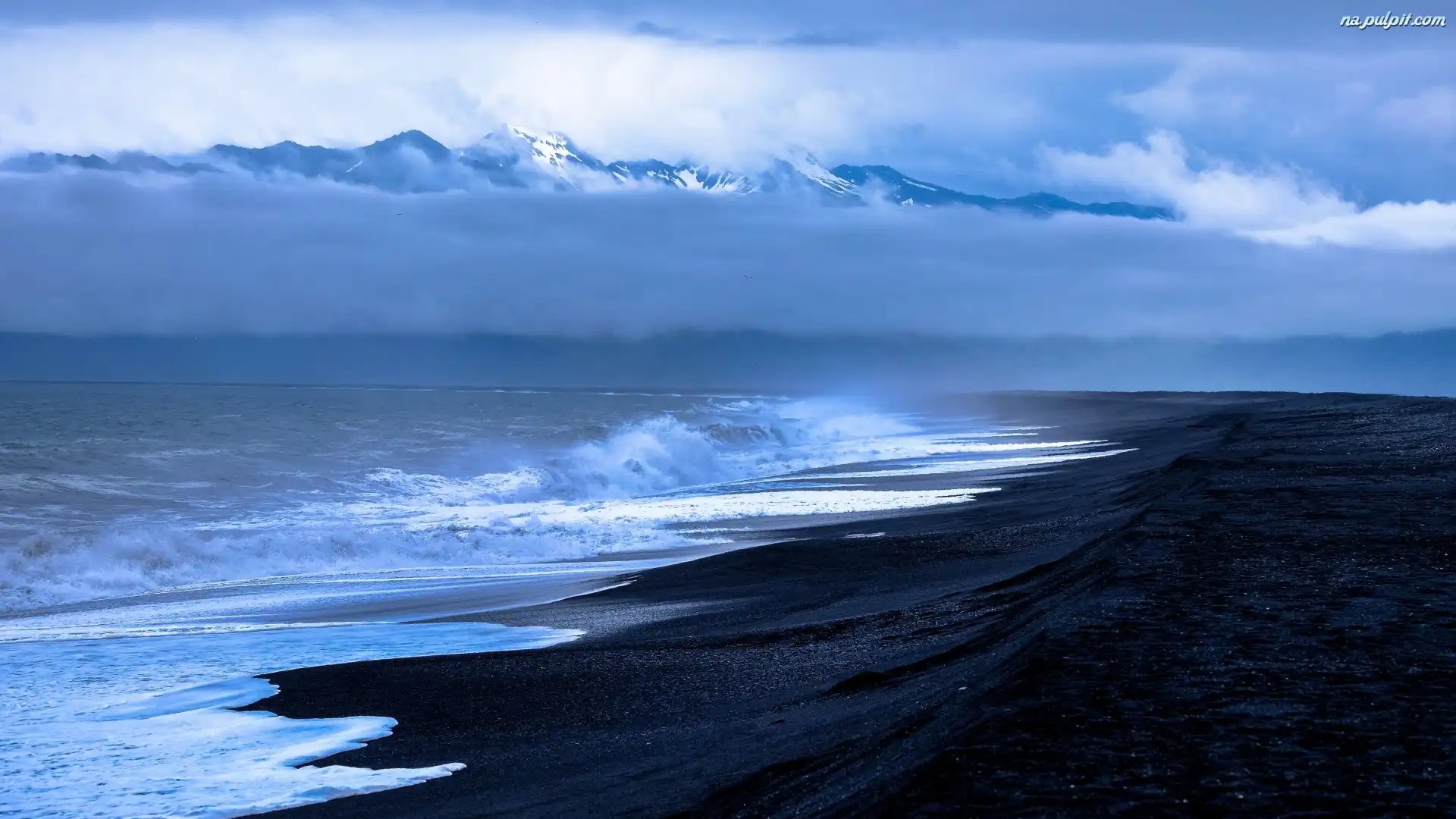 Fale, Ocean, Plaża, Góry, Chmury, Piasek, Morze, Czarny Na Pulpit