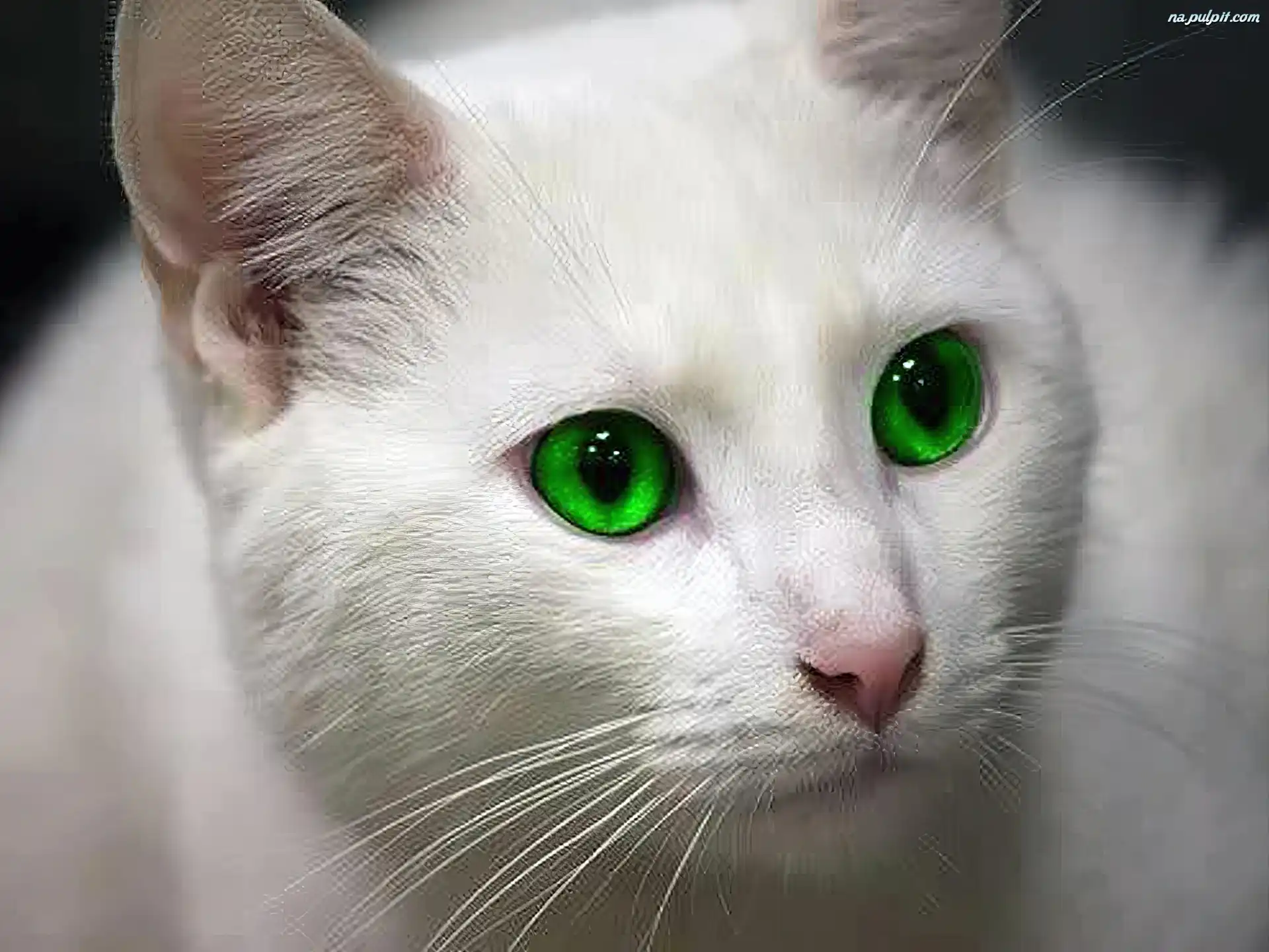 Oczy, Kot, Biały, Zielone Na Pulpit