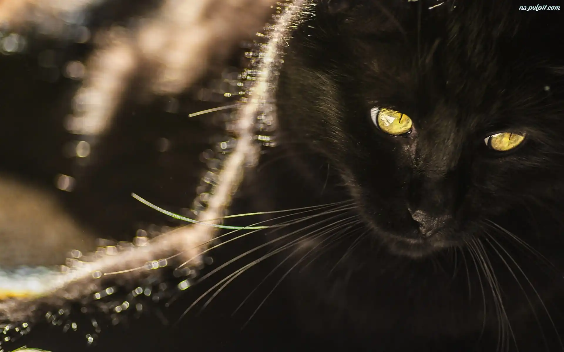 Oczy, Kot, Czarny, Żółte Na Pulpit