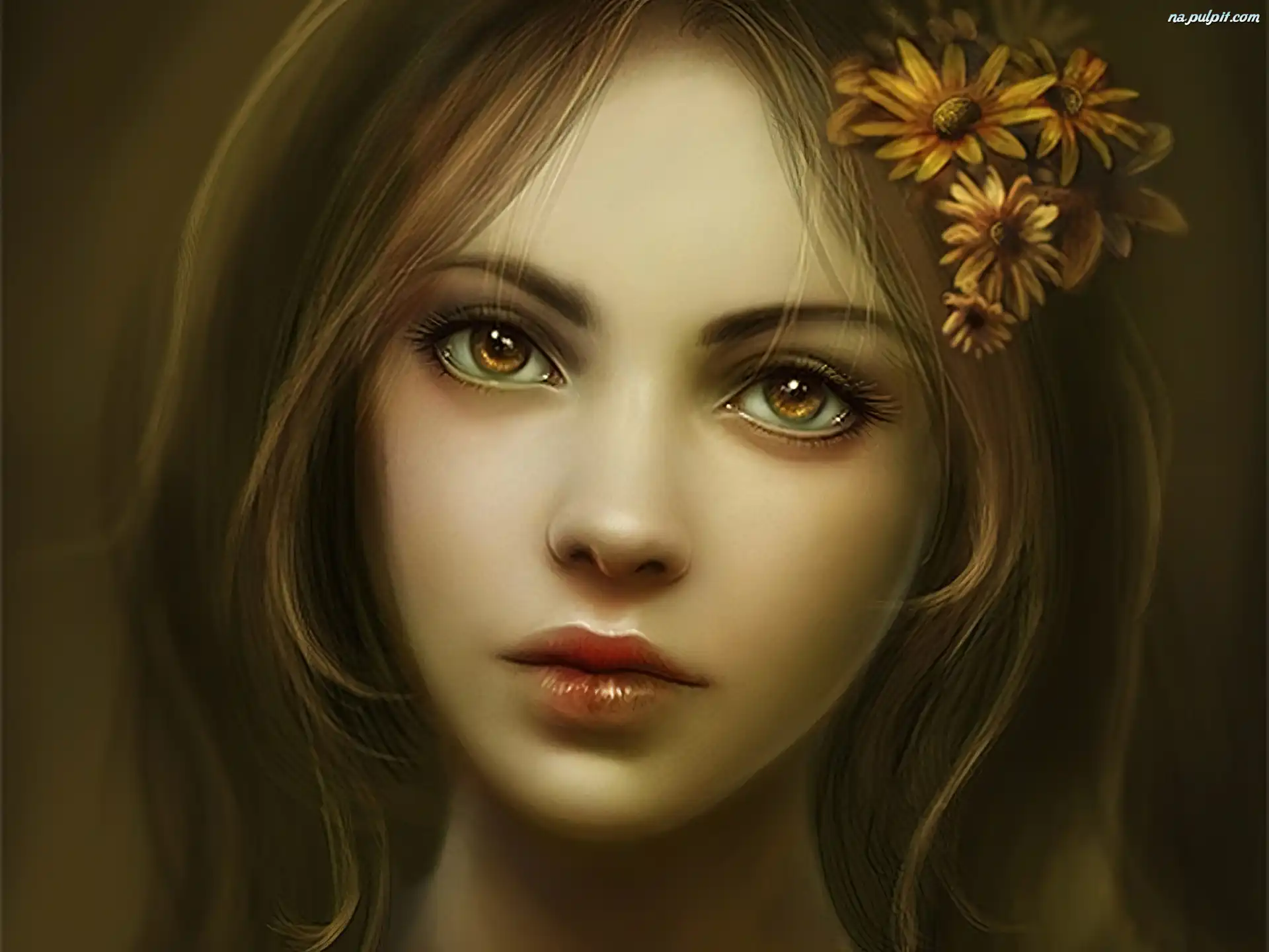 Oczy, Kwiaty, Dziewczyna, BrÄ…zowe Na Pulpit