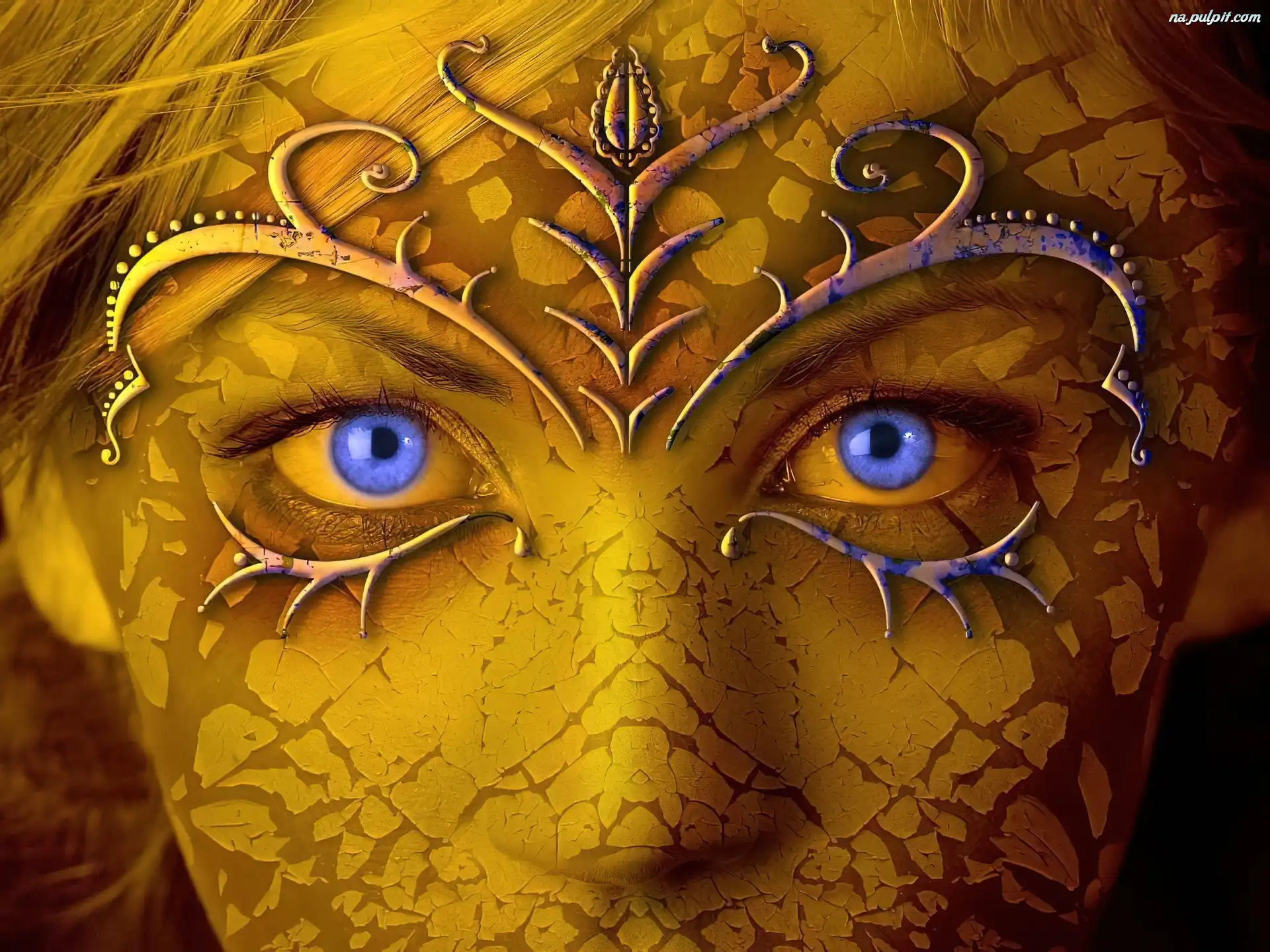 Oczy, Żółto, Kobieta, Fantasy, Niebieskie Na Pulpit