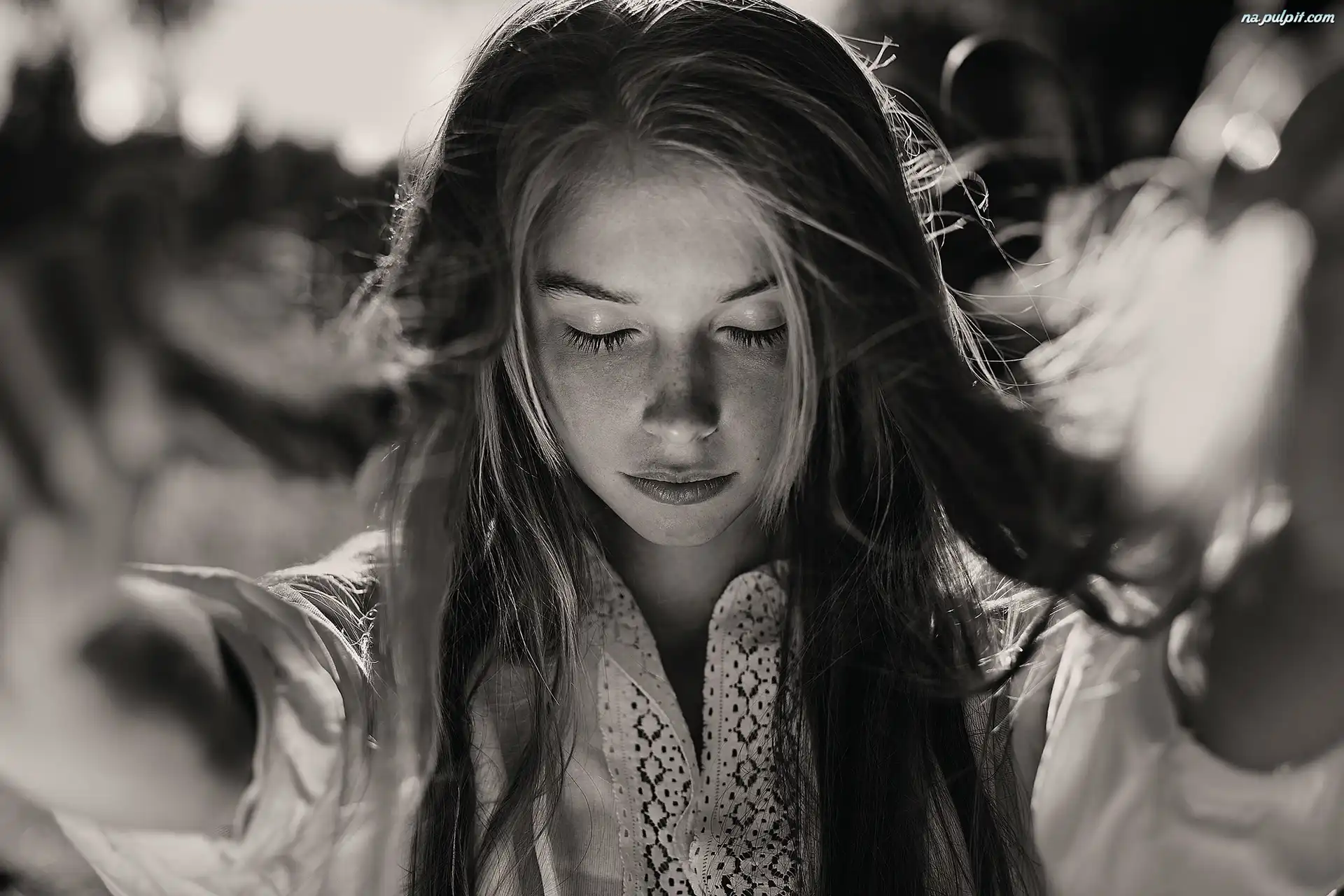 Oczy, Włosy, Długie, Kobieta, Zamknięte