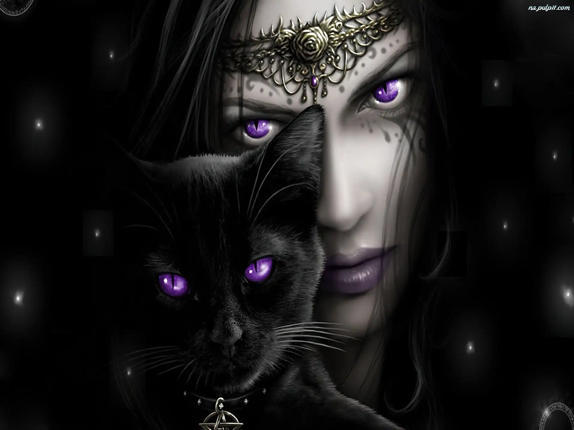 Kobieta, Kot, Fioletowe, Oczy Na Pulpit