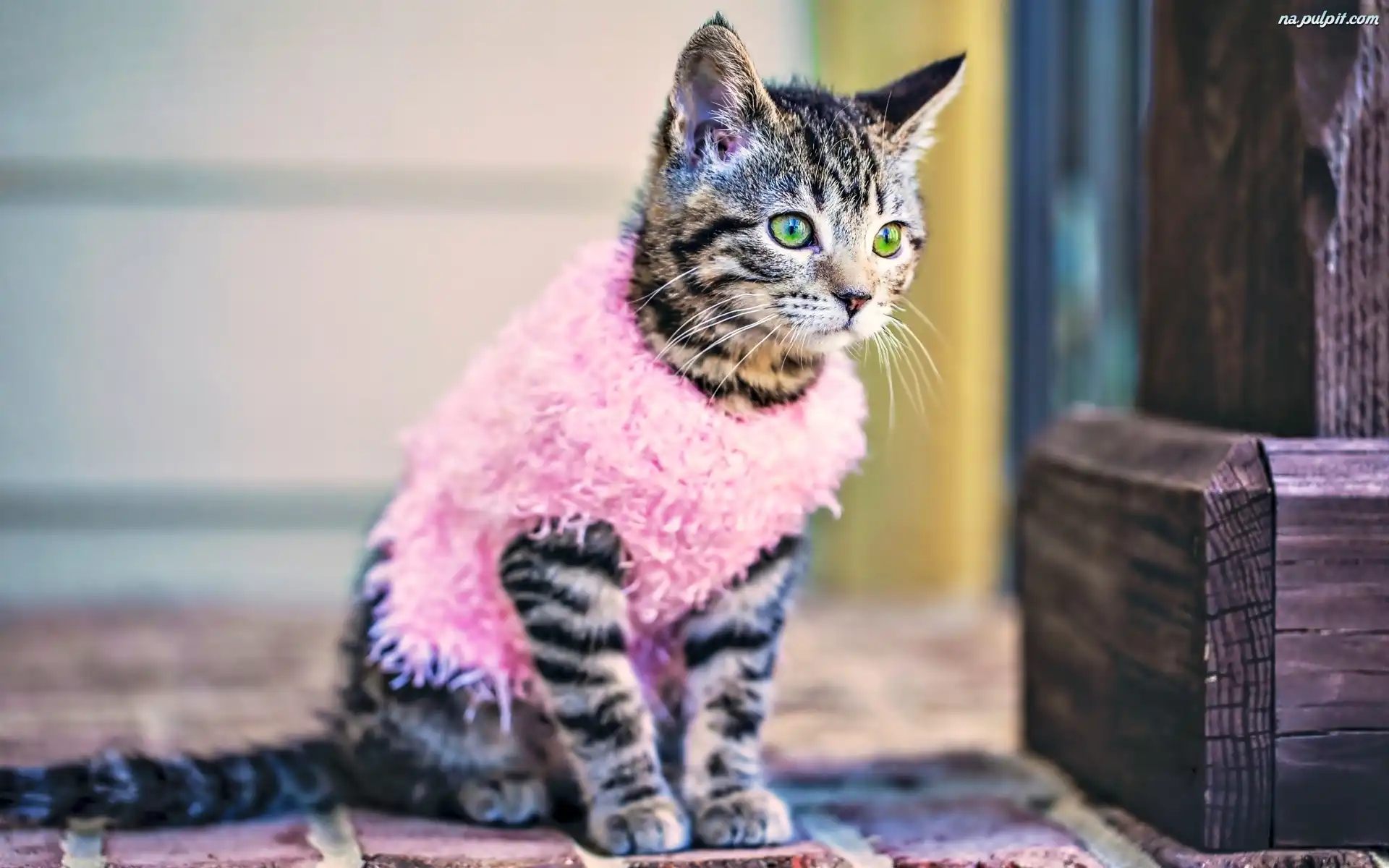 Oczy, Ubranko, Różowe, Kot, Zielone Na Pulpit