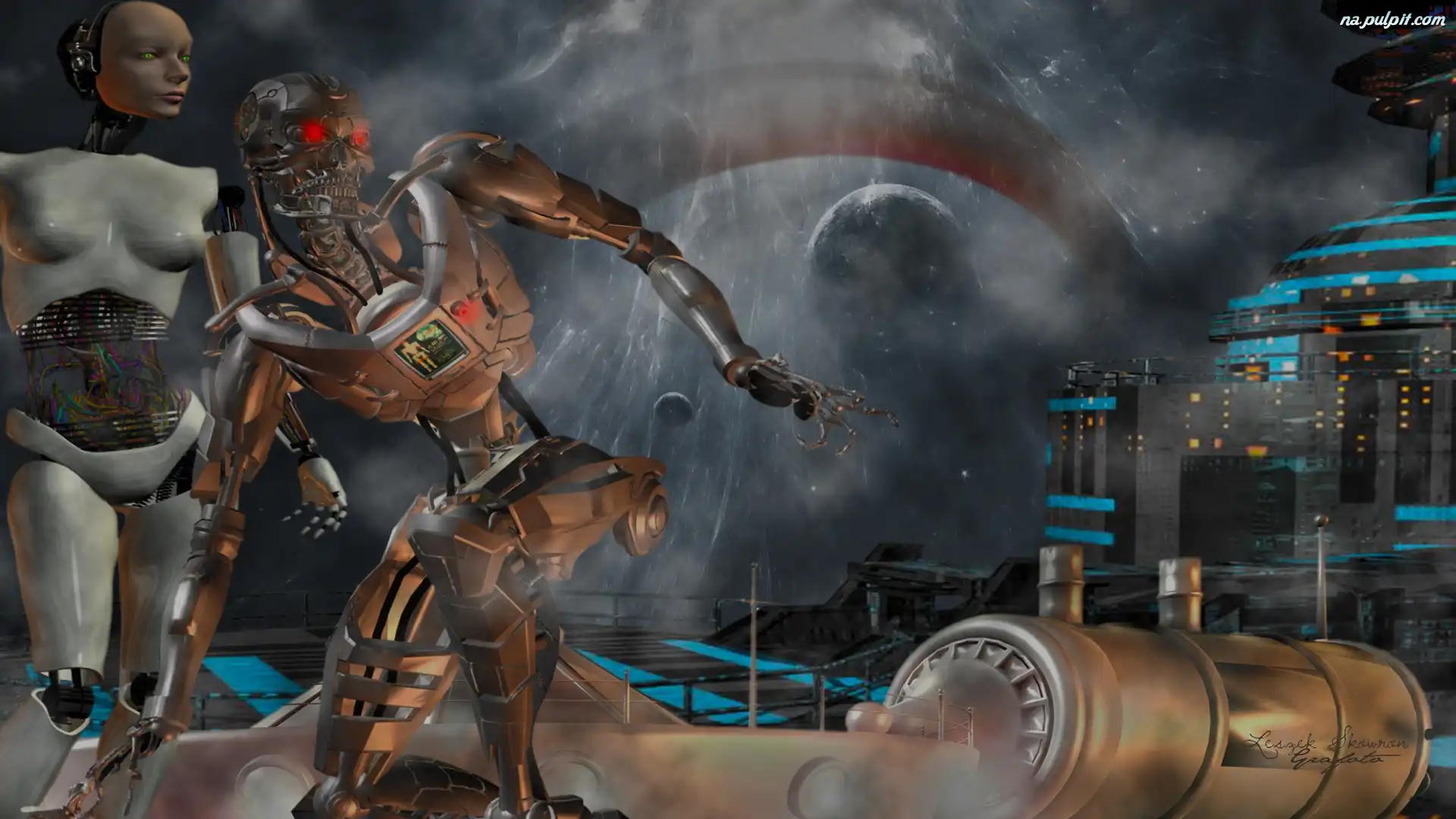 Oczy, Światło, Fantasy, Maszyna, Planeta, Kable Na Pulpit