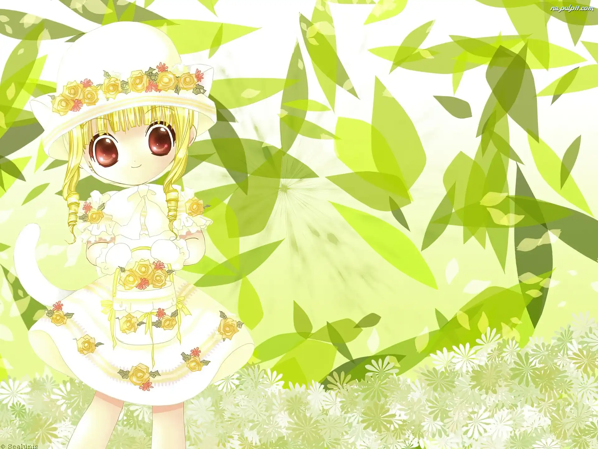 Pita Ten, kwiatki, dziecko, oczy Na Pulpit