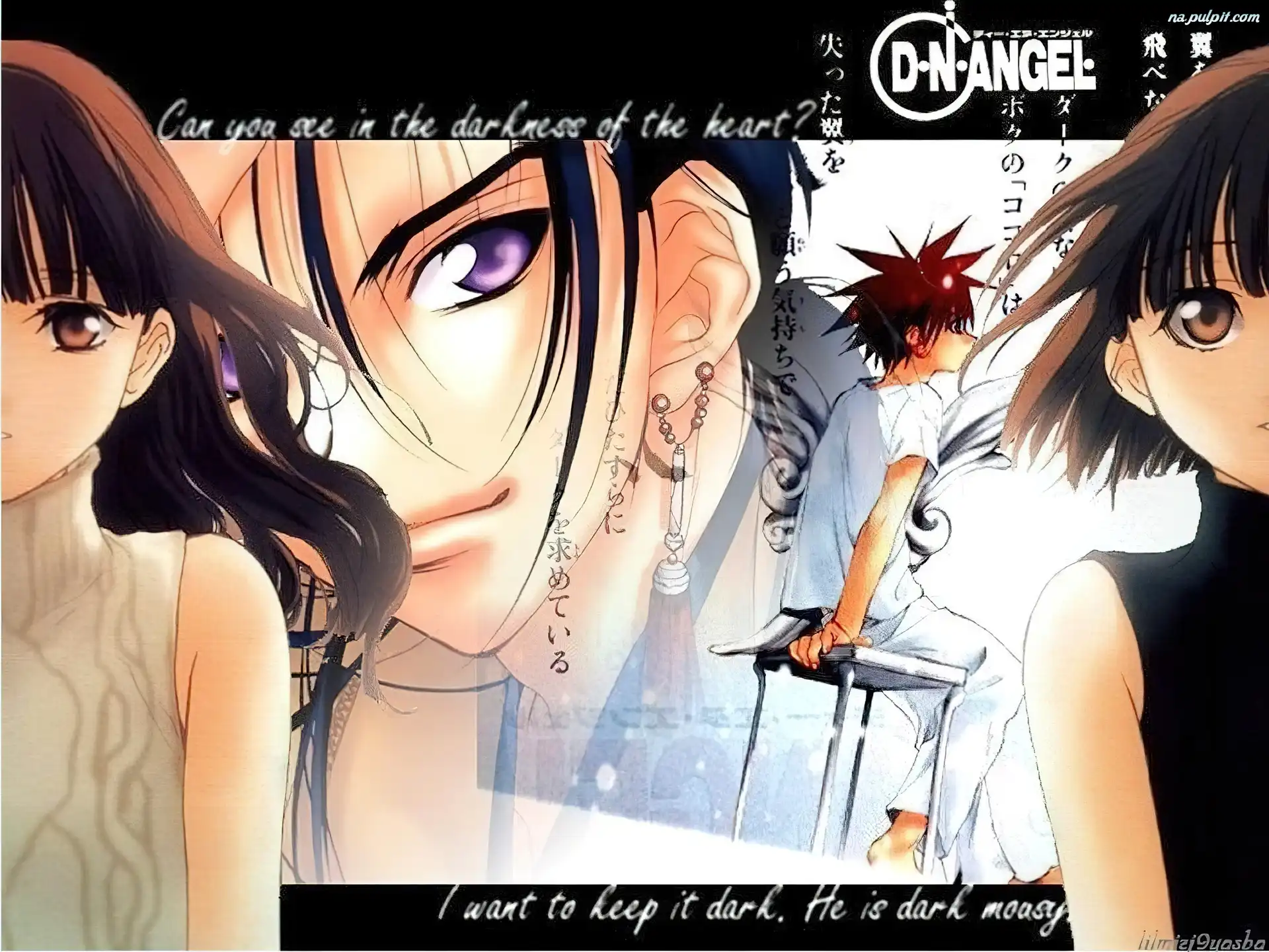 dziewczyny, oczy, taboret, napisy, D N Angel, twarz Na Pulpit
