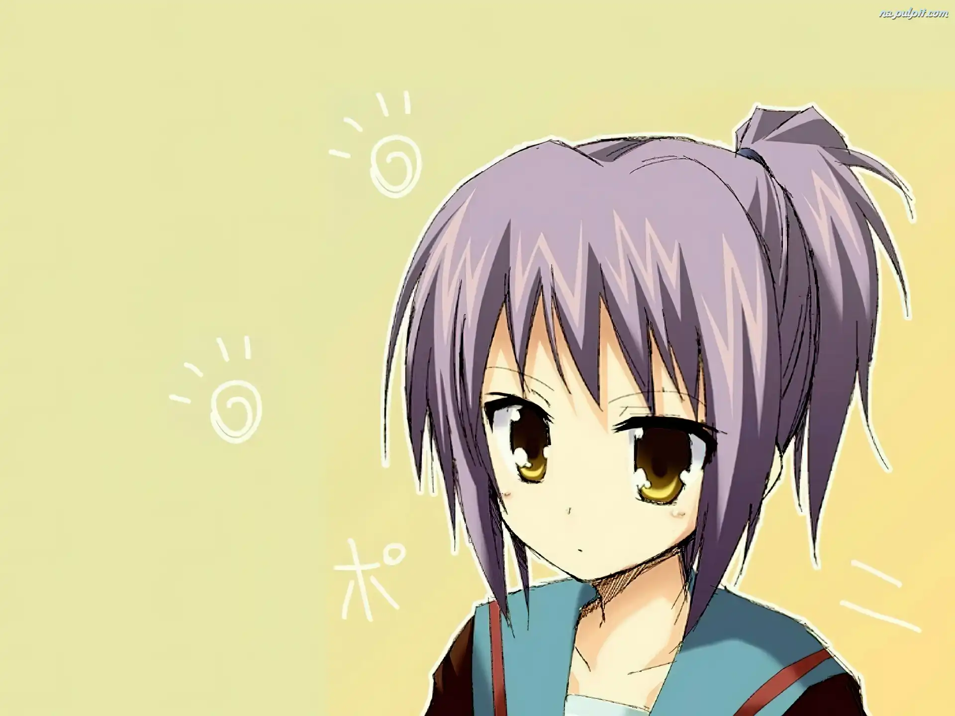 duże oczy, Suzumiya Haruhi No Yuuutsu, fioletowe włosy Na Pulpit