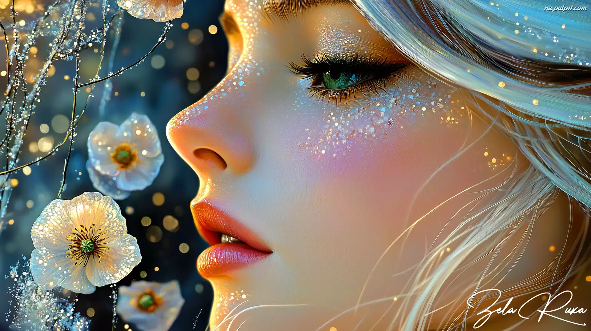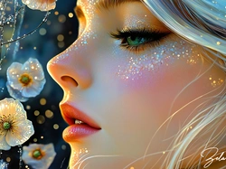 Profil, Dziewczyna, Zielone, Oczy, Twarz, Grafika AI Na Pulpit
