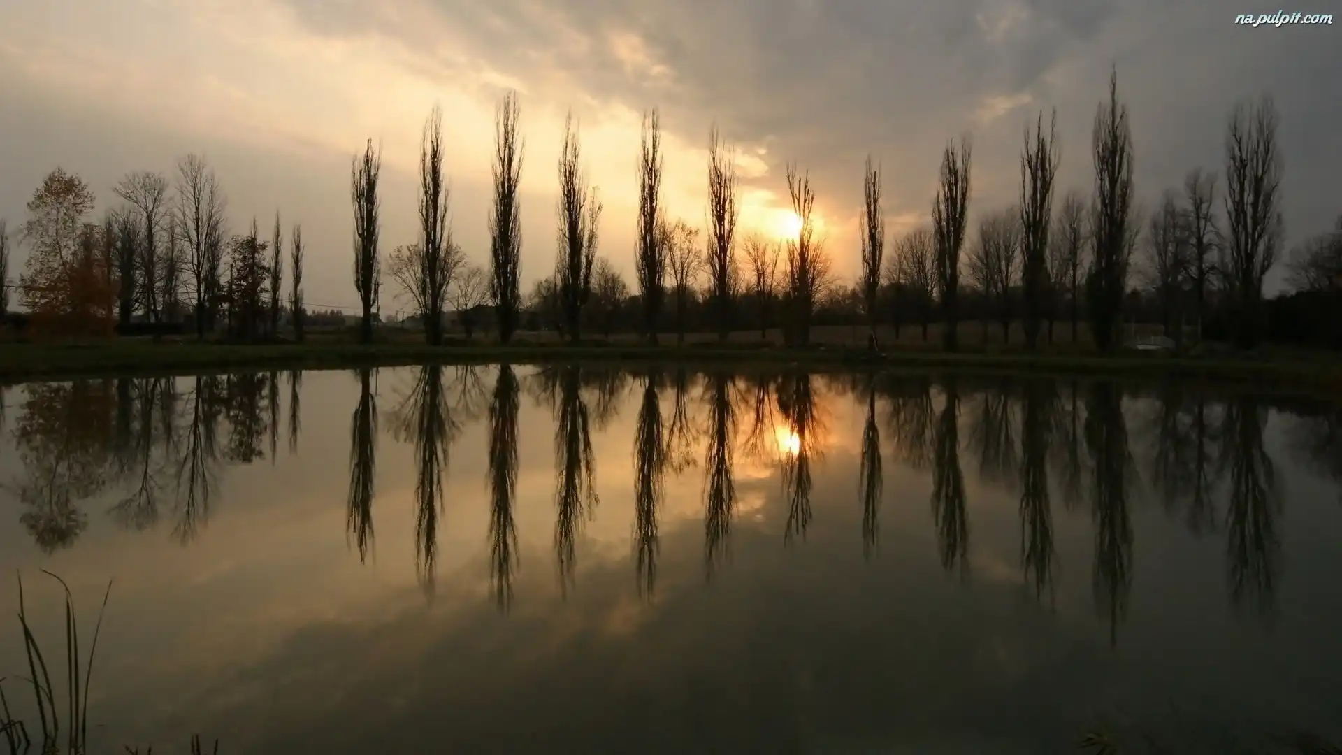 Odbicie, Drzewa, Chmury, Jezioro Na Pulpit