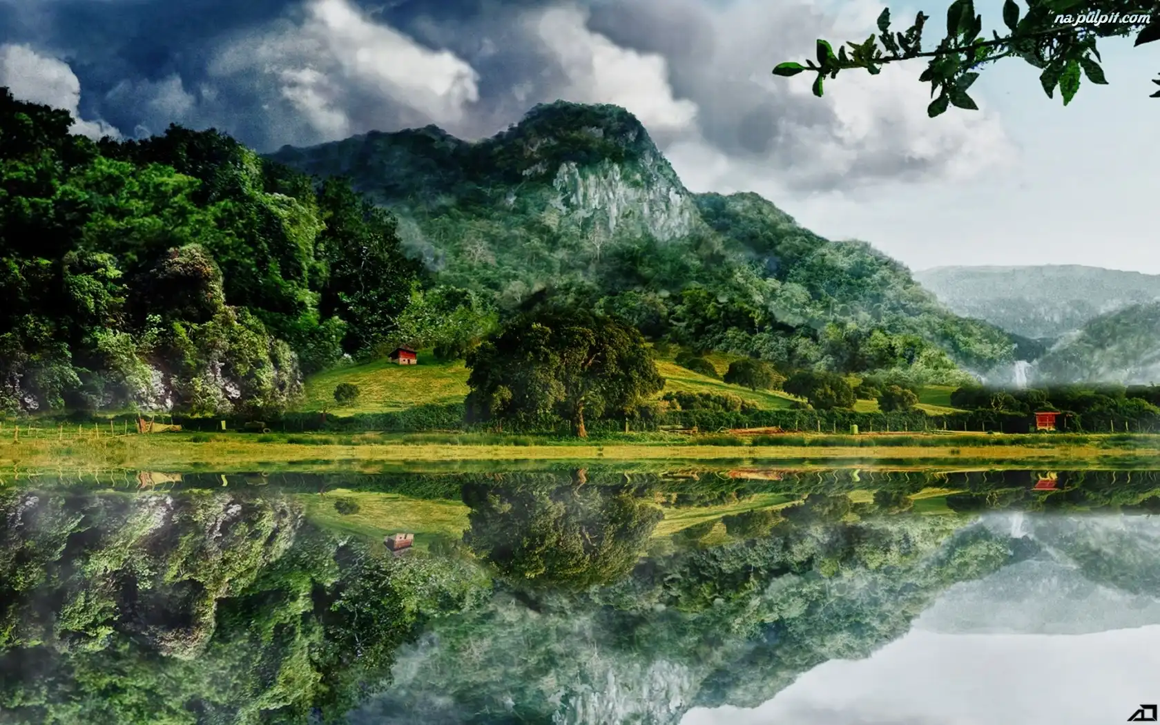 Odbicie, Góry, Chmury, Jezioro Na Pulpit