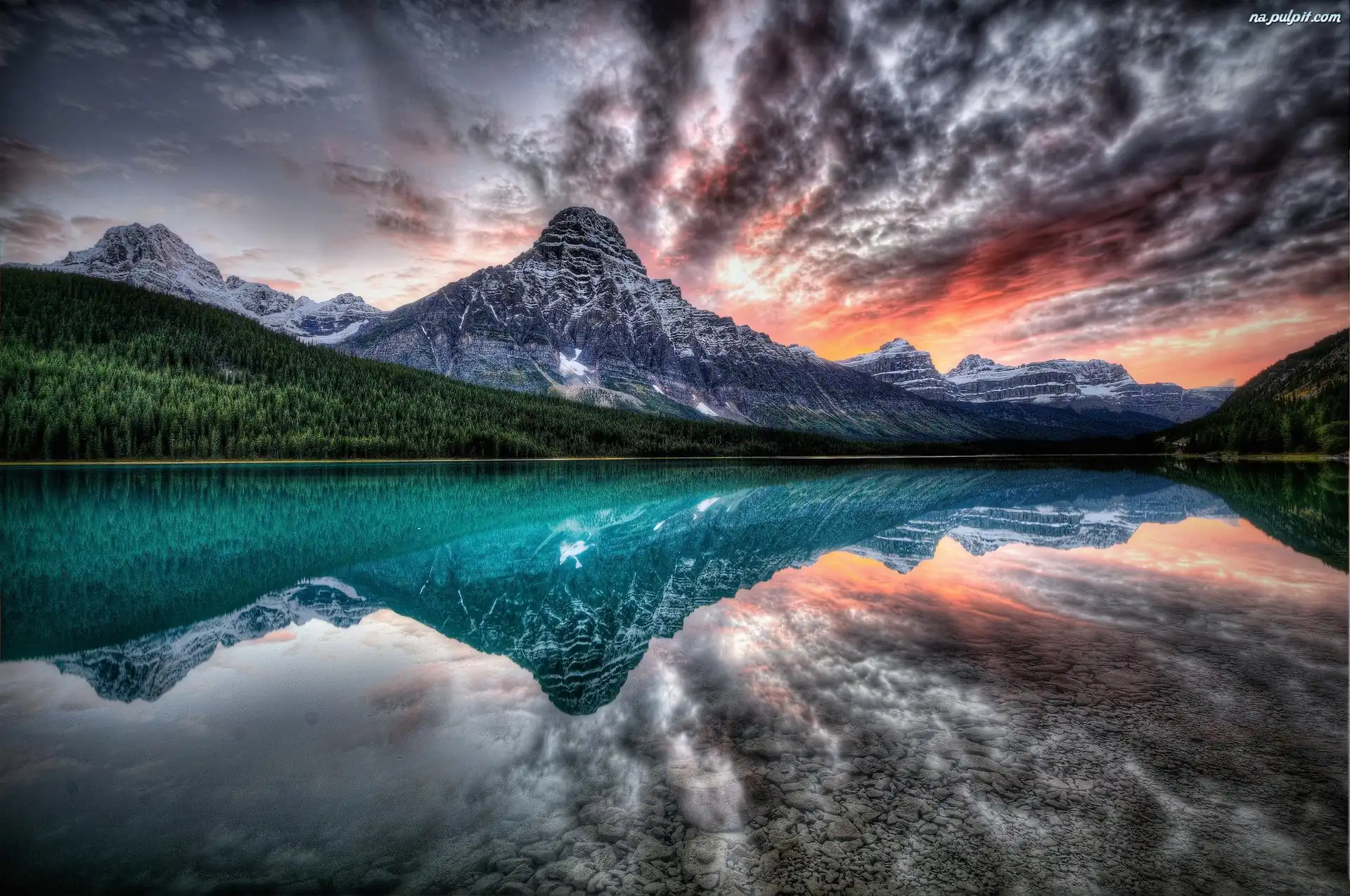 Odbicie, Jezioro, Góry, Chmury, Lasy Na Pulpit