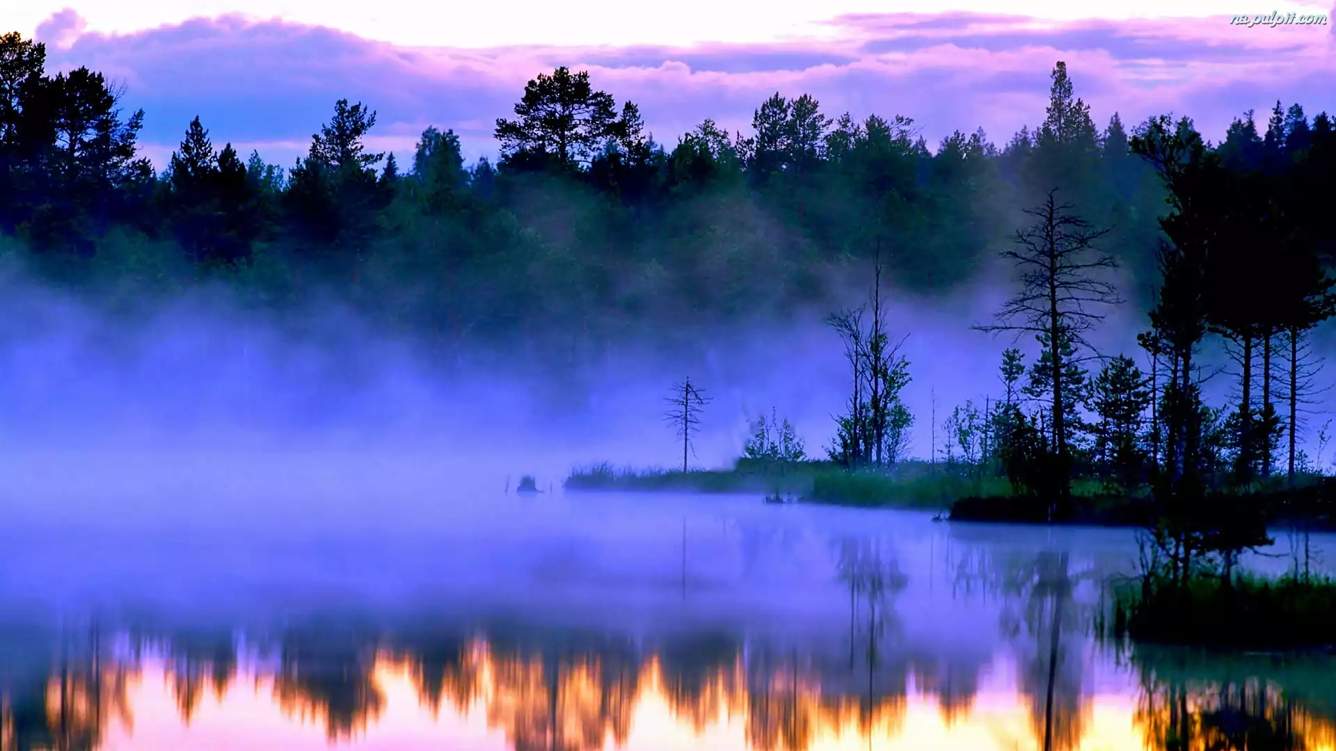 Odbicie, Jezioro, Las, Chmury, Mgła Na Pulpit