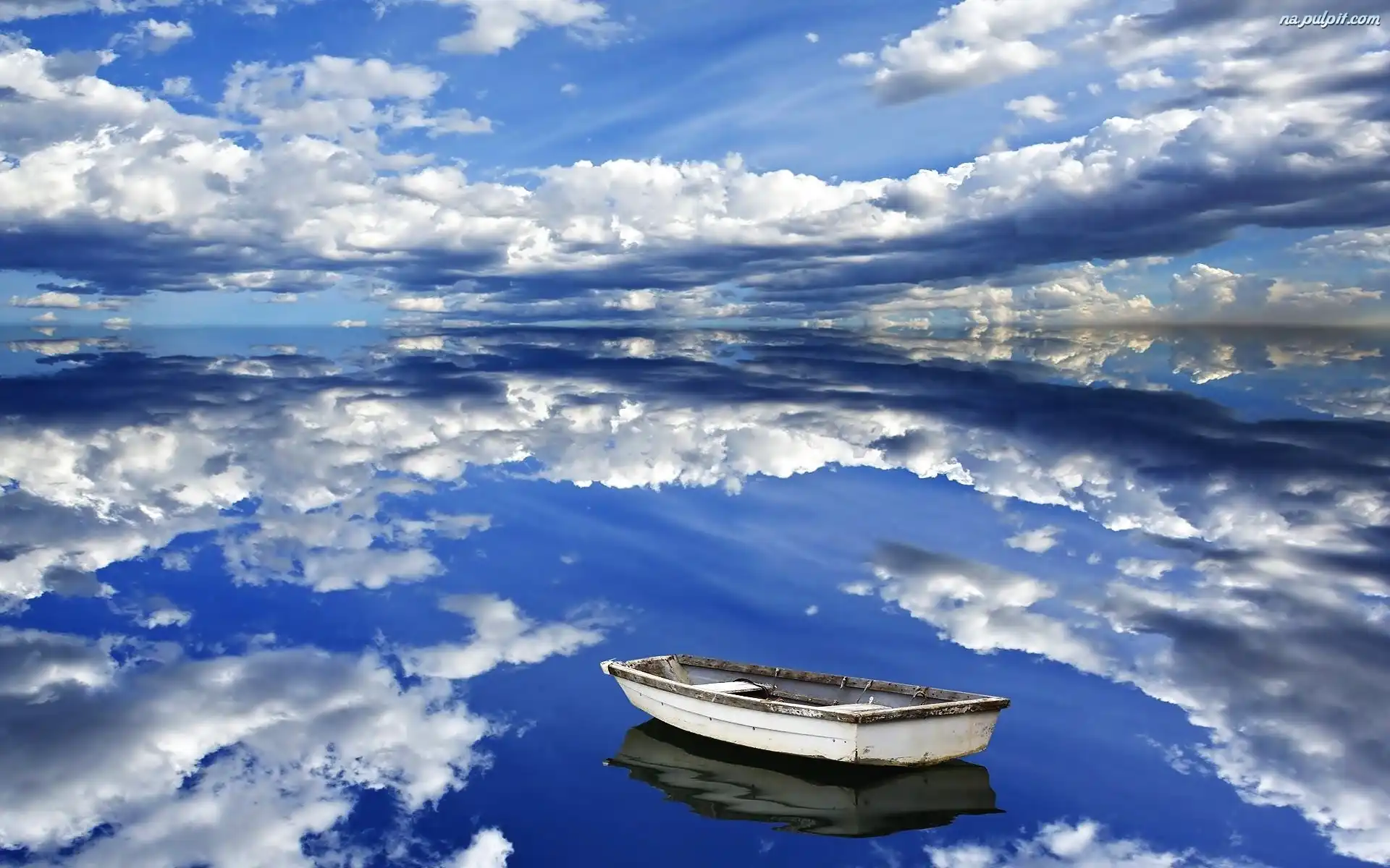 Odbicie, Jezioro, Niebo, Chmury, Łódka Na Pulpit