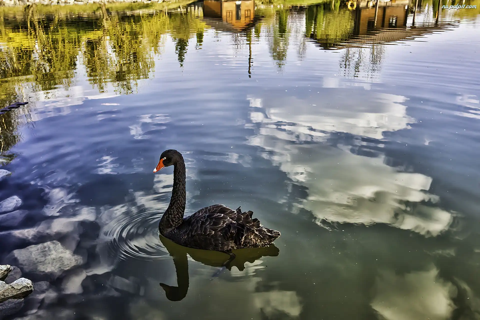 Odbicie, Jezioro, Łabędz, Czarny, Domy Na Pulpit