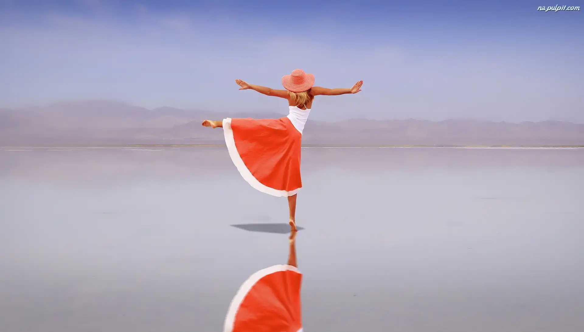Odbicie, Kapelusz, Dziewczyna, Woda