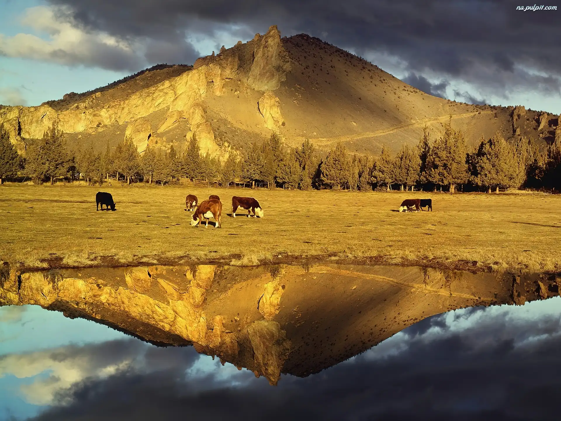 Odbicie, Krowy, Pastwisko, Góra, Woda Na Pulpit