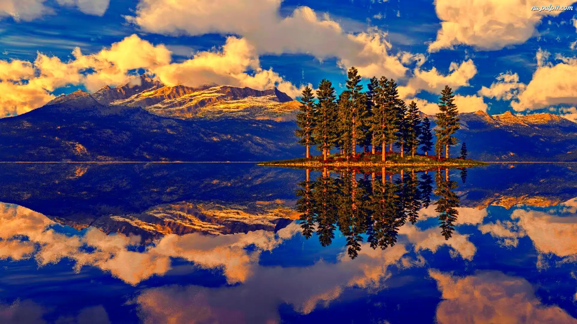 Odbicie, Chmury, Góry, Drzewa Na Pulpit