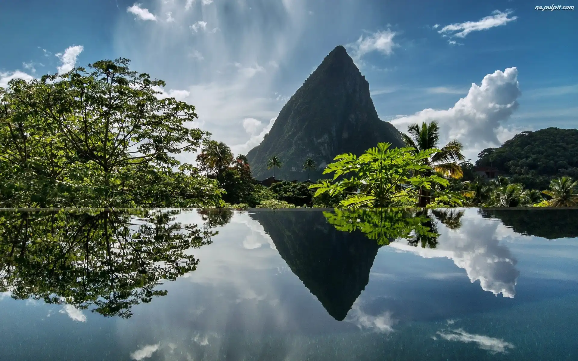 Odbicie, Zieleń, Chmury, Góry, Woda Na Pulpit
